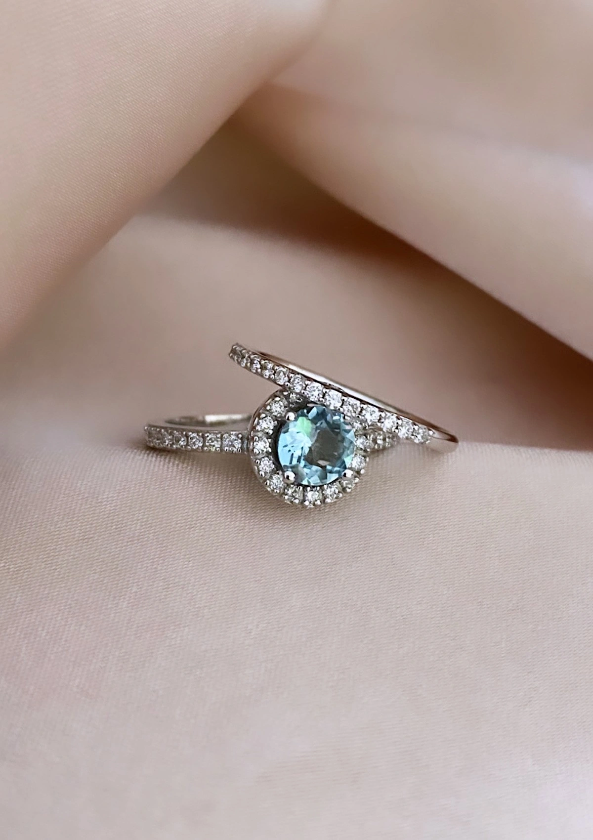 AMALFI 18K white gold diamond & aquamarine halo ring