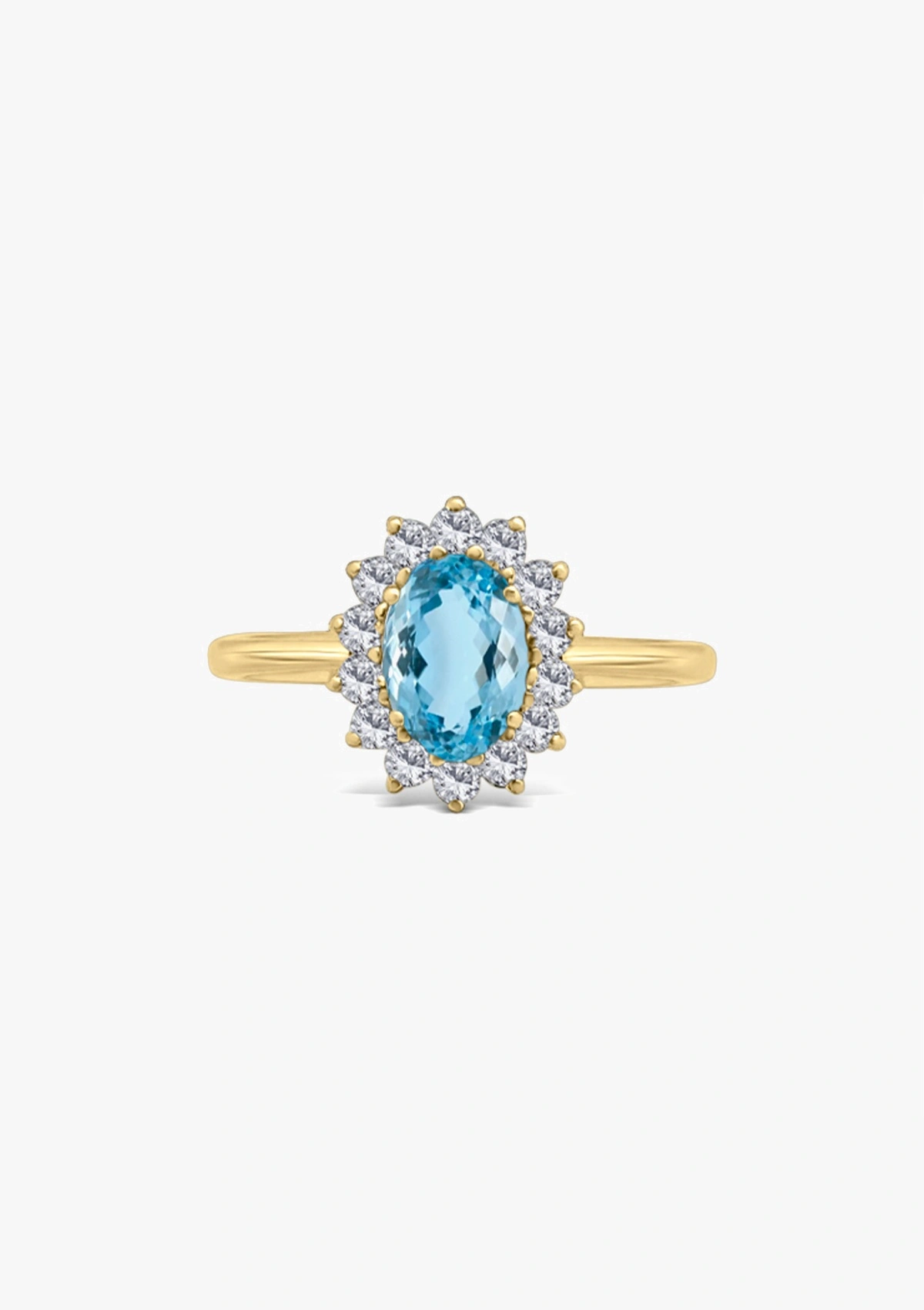 - 1 high quality 7x5mm oval cut aquamarine (AAA grade), weighing approximately 1,00 ct. (each natural gemstone used by GODIAM in its creations is unique; gemstone weights may vary slightly depending on the characteristics of each cut).