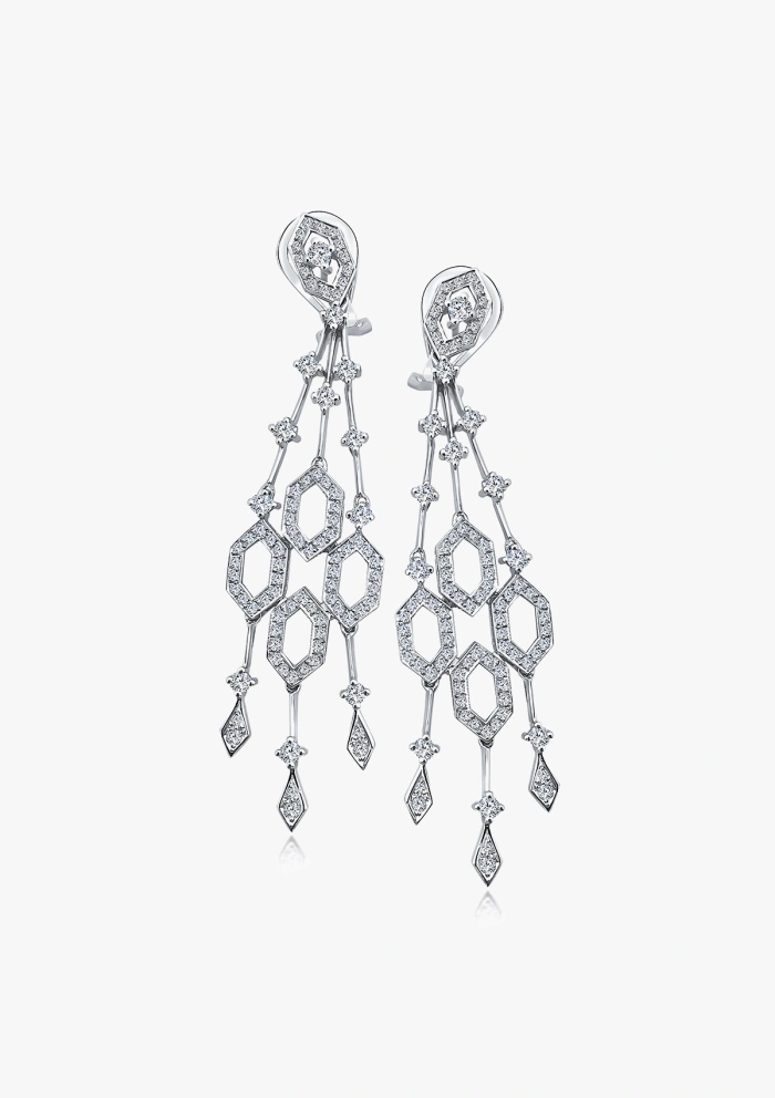 The BIG LIFE earrings belong to that select group of Jewelry that leaves us speechless. A tribute to timeless elegance, these long diamond earrings embody a perfect fusion of delicacy and sophistication. A unique masterpiece that combines the exquisite elegance of its careful design with the intense brightness of its 176 diamonds that capture the light with every movement.
