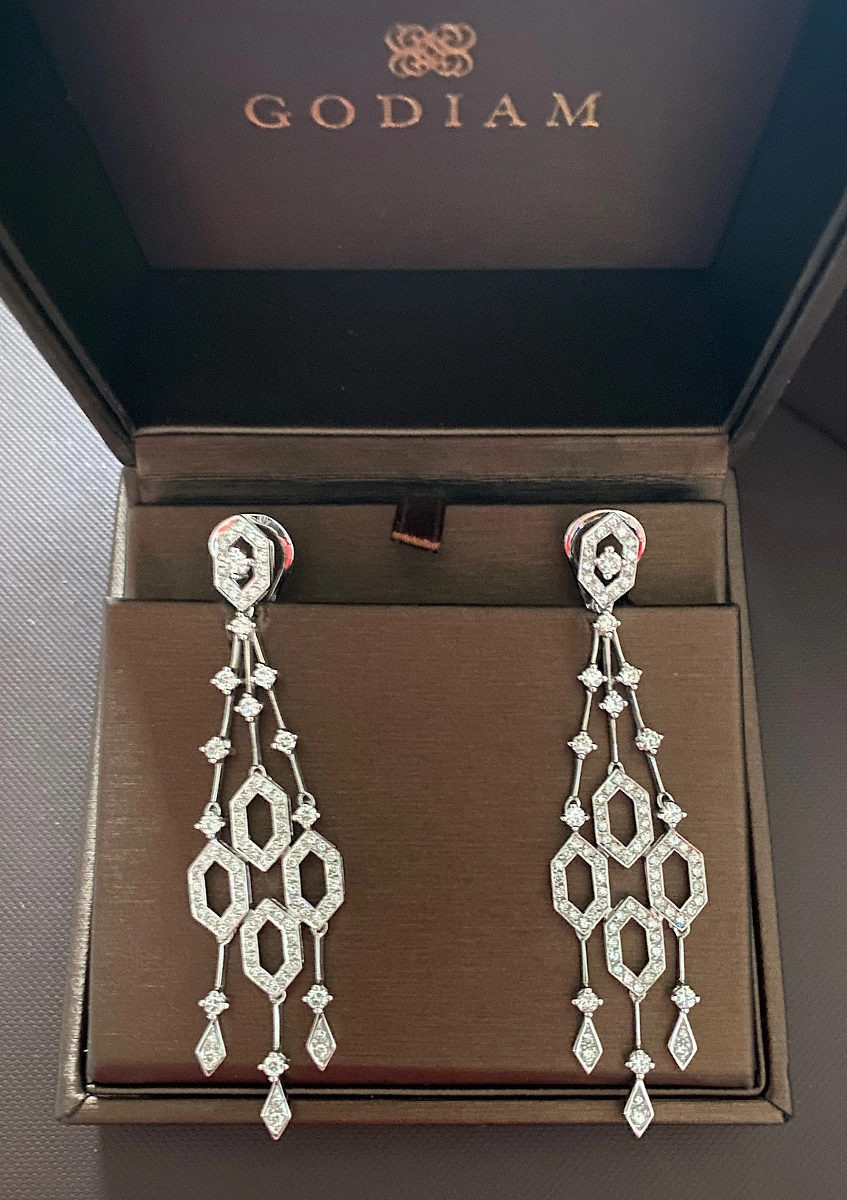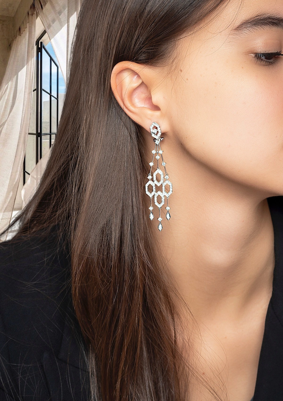 Delivery between 3-4 working daysStunning long earrings handcrafted in 18K white gold with brilliant cut diamonds