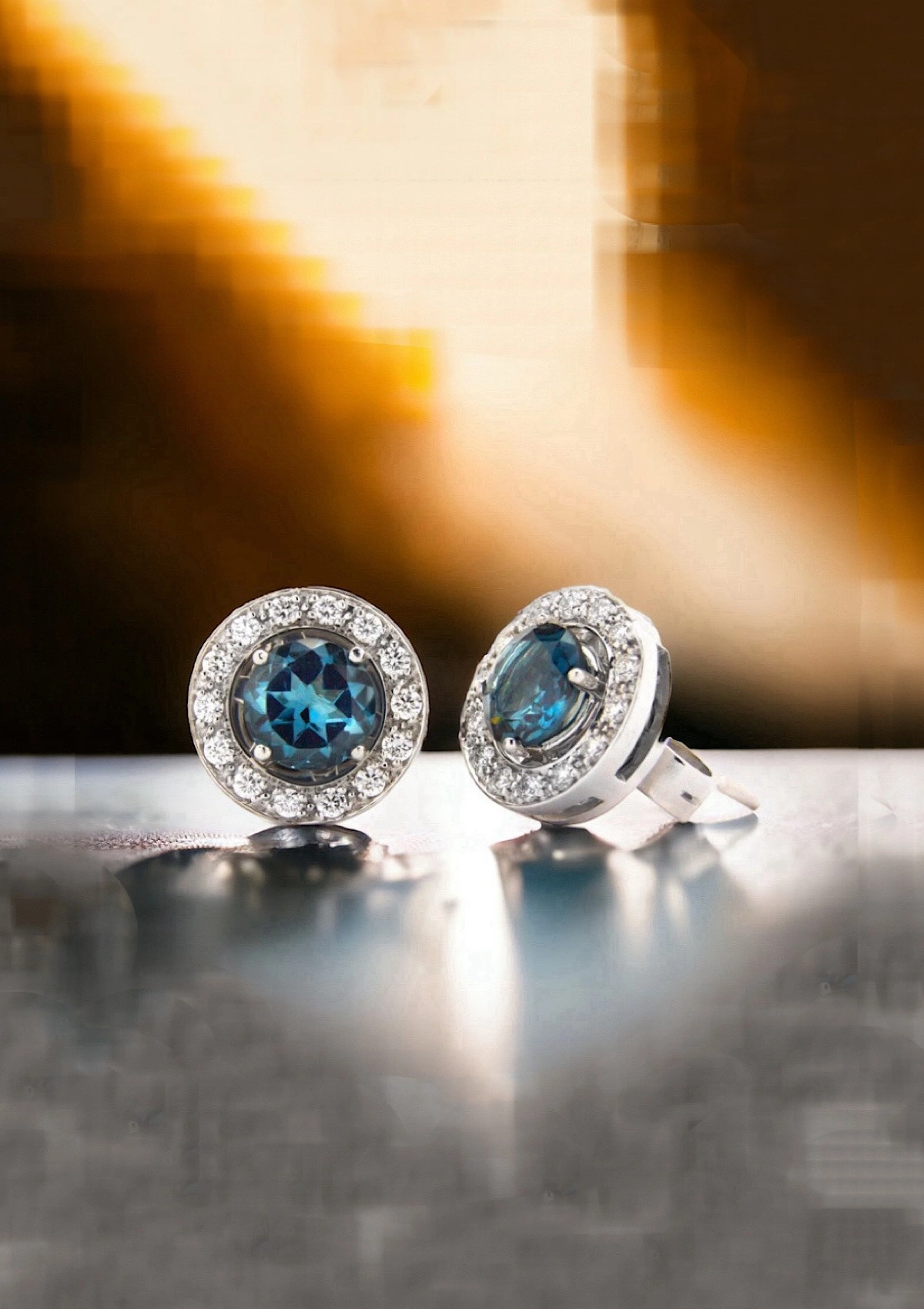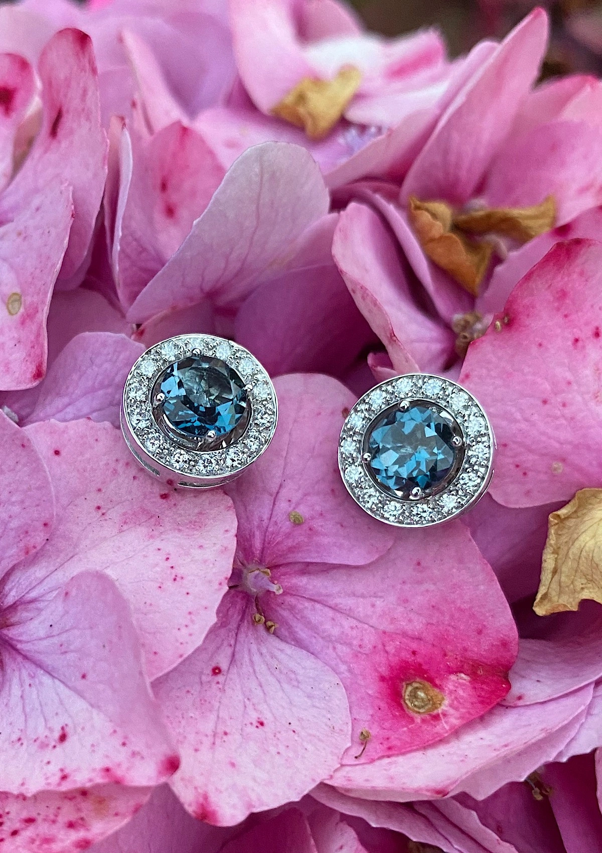 - 2 high quality 6mm diameter briliiant cut London Blue Topaz (grade AAA) 1,74 cts. aprox.