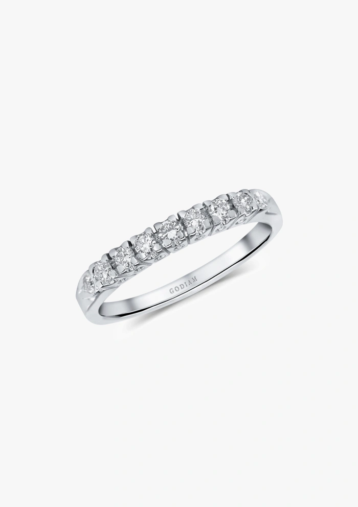 Delivery between 3-4 working daysBeautiful and stylized half eternity ring handcrafted in 18K white gold with 9 brilliant cut diamonds.