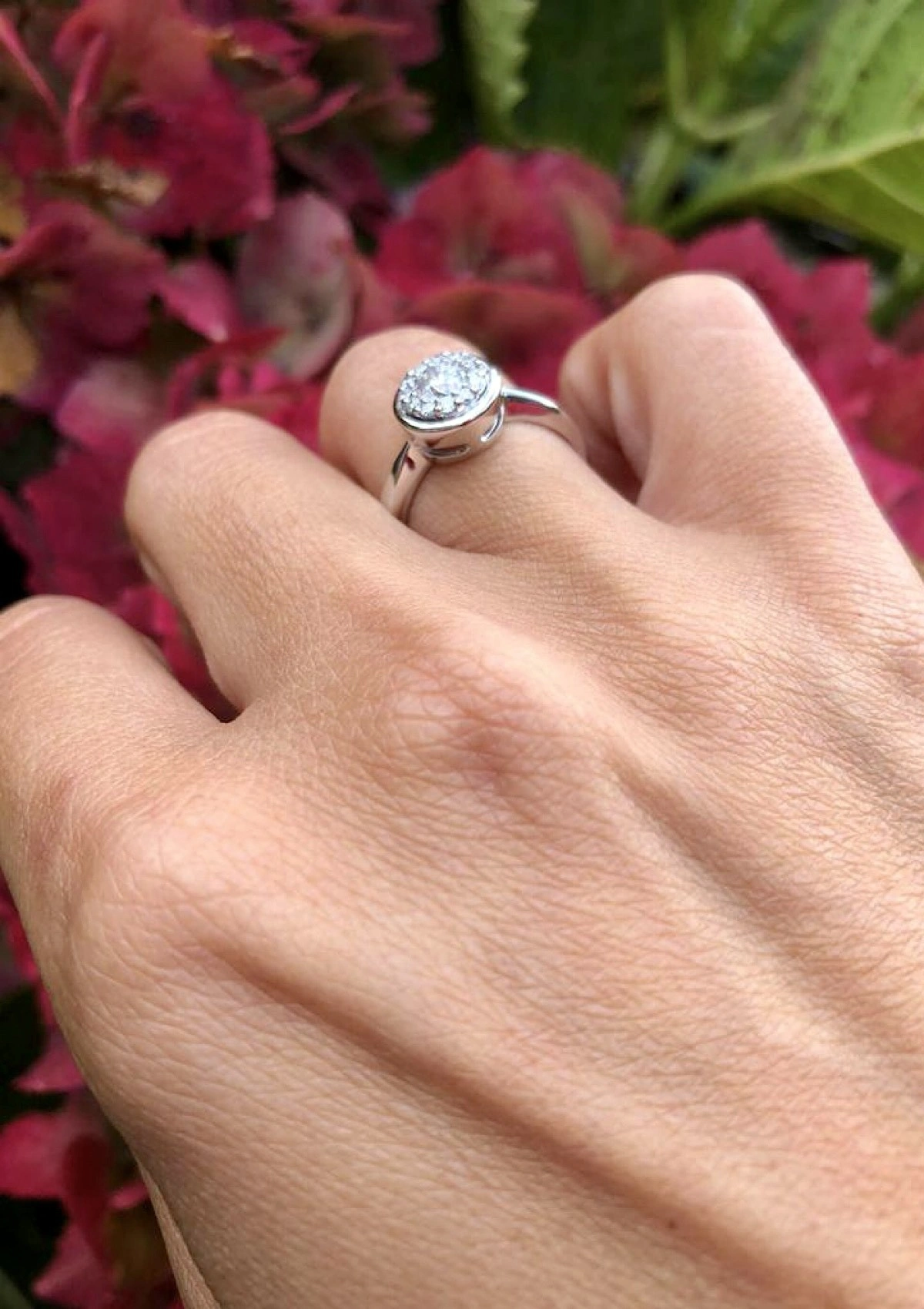 The SINTRA ring is a unique, magical solitaire design. Its 12 brilliant cut diamonds pavé-set around the central main one, create an infinity effect. An astonishing optical illusion that makes it appear as a single diamond.