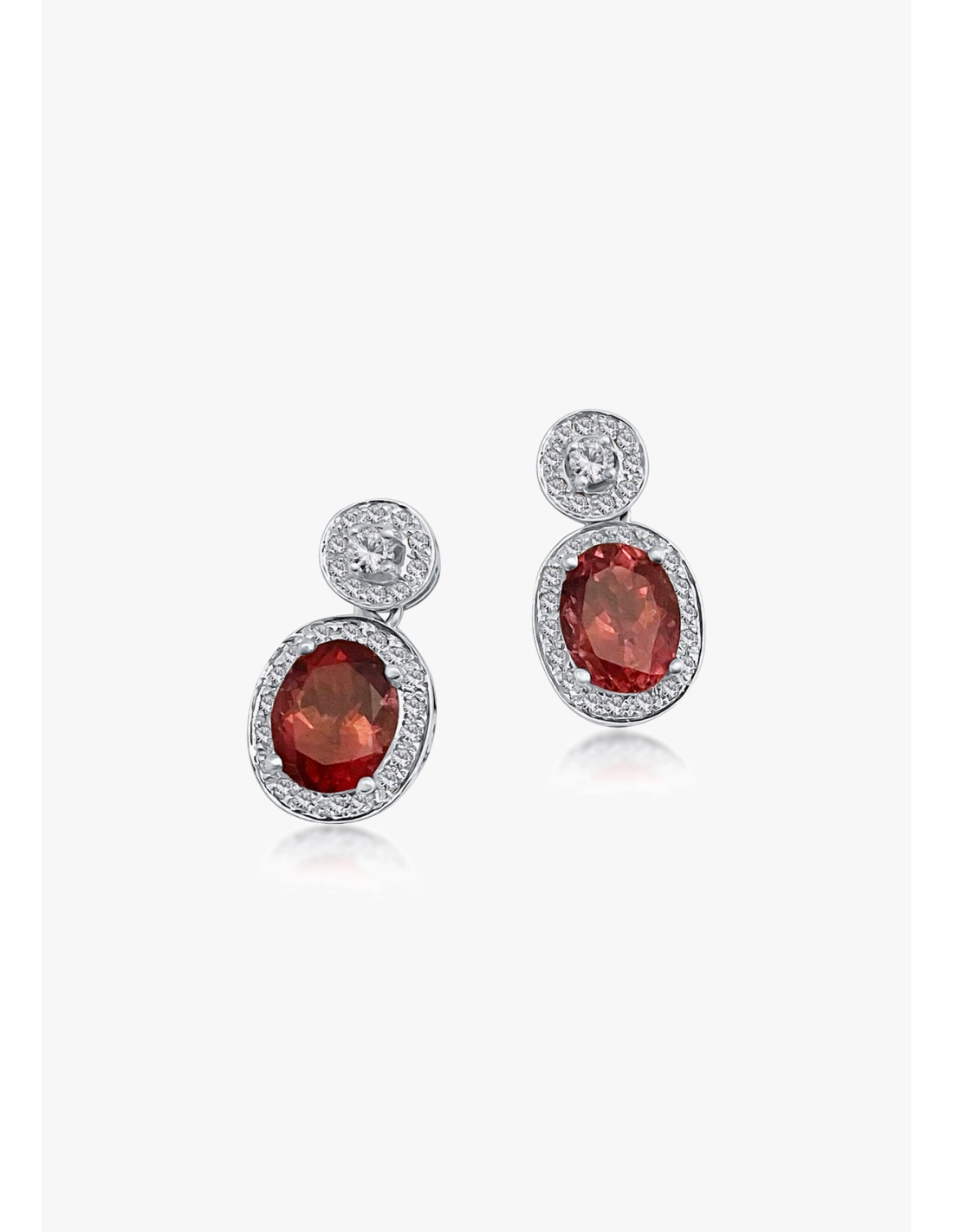 Delivery between 3-4 working daysDelicate earrings handmade in 18K white gold with a halo of brilliant cut diamonds surrounding a pair of oval rubellites.