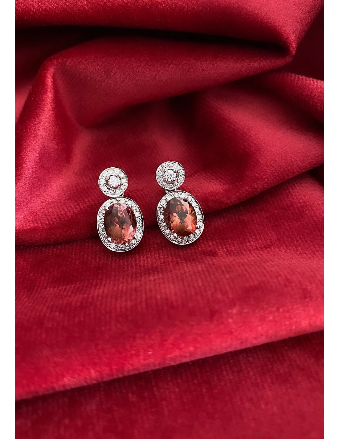 - 2 high quality oval cut rubellites 9x7mm (AAA grade), weighing approximately 4,21 ct. (each natural gemstone is unique; weights may vary slightly depending on the characteristics of each cut).
