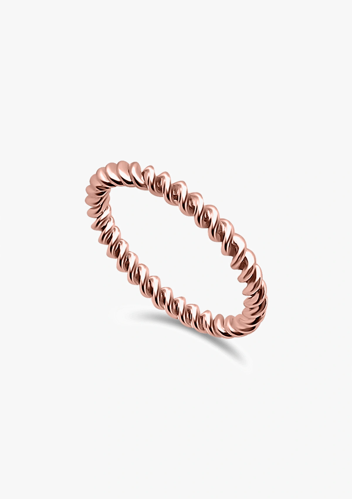 Preciosa alianza de aro macizo en espiral realizada en oro rosa de Primera Ley (18 quilates).