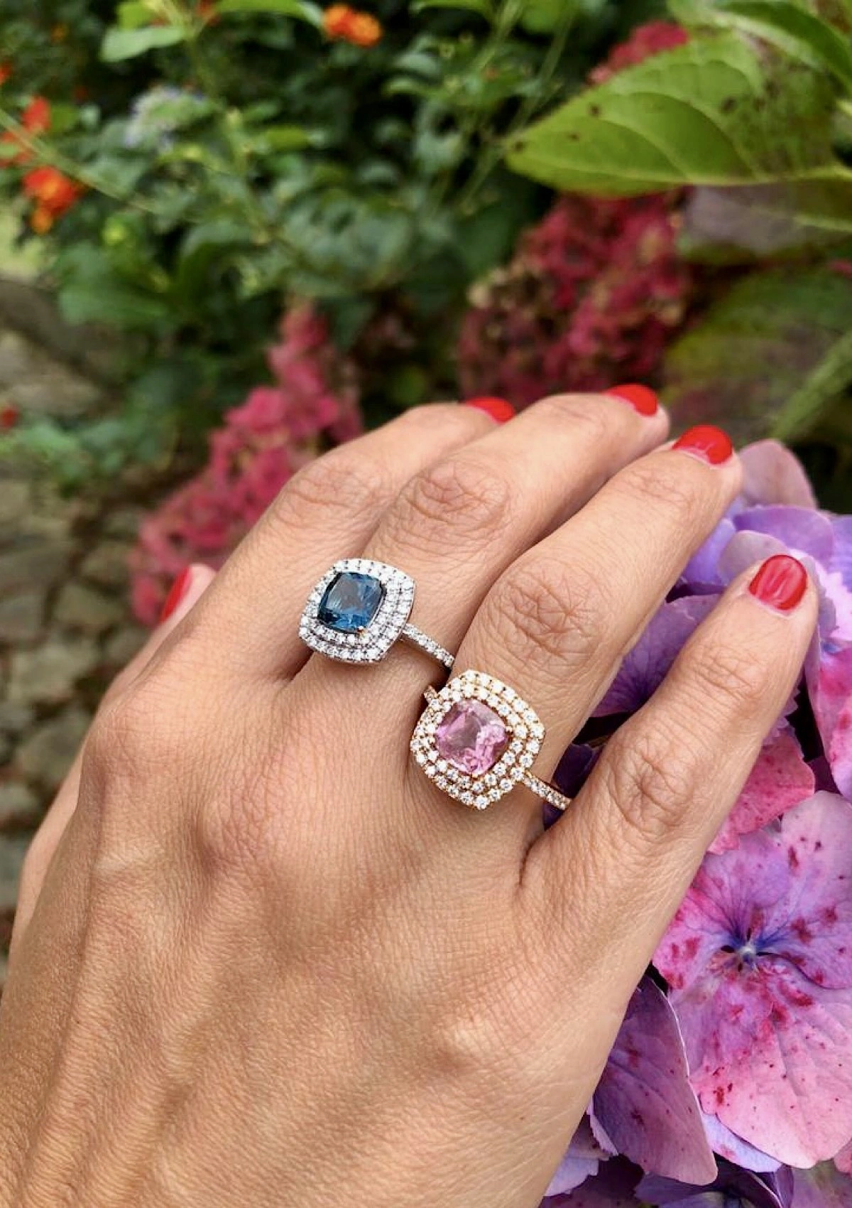 Hay piezas que te enamoran desde el primer instante que las ves, como el anillo RIVER en oro rosa de 18K con doble halo de diamantes y turmalina rosa briolette. Por su diseño, por su elegancia, por su presencia, versatilidad y funcionalidad. Por la delicada y perfecta combinación de sus gemas... y por otras muchas razones que muy pronto podrás descubrir.