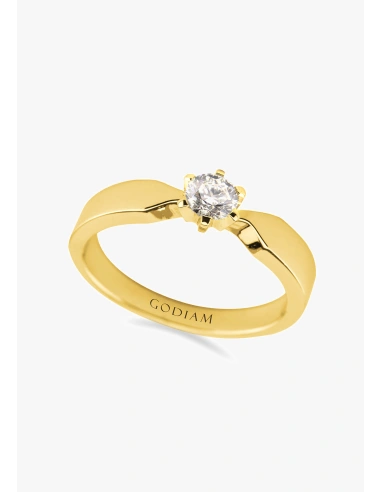 Anillo solitario fabricado en oro amarillo de 18 quilates con un diamante talla brillante engastado en garra de 6 puntas.