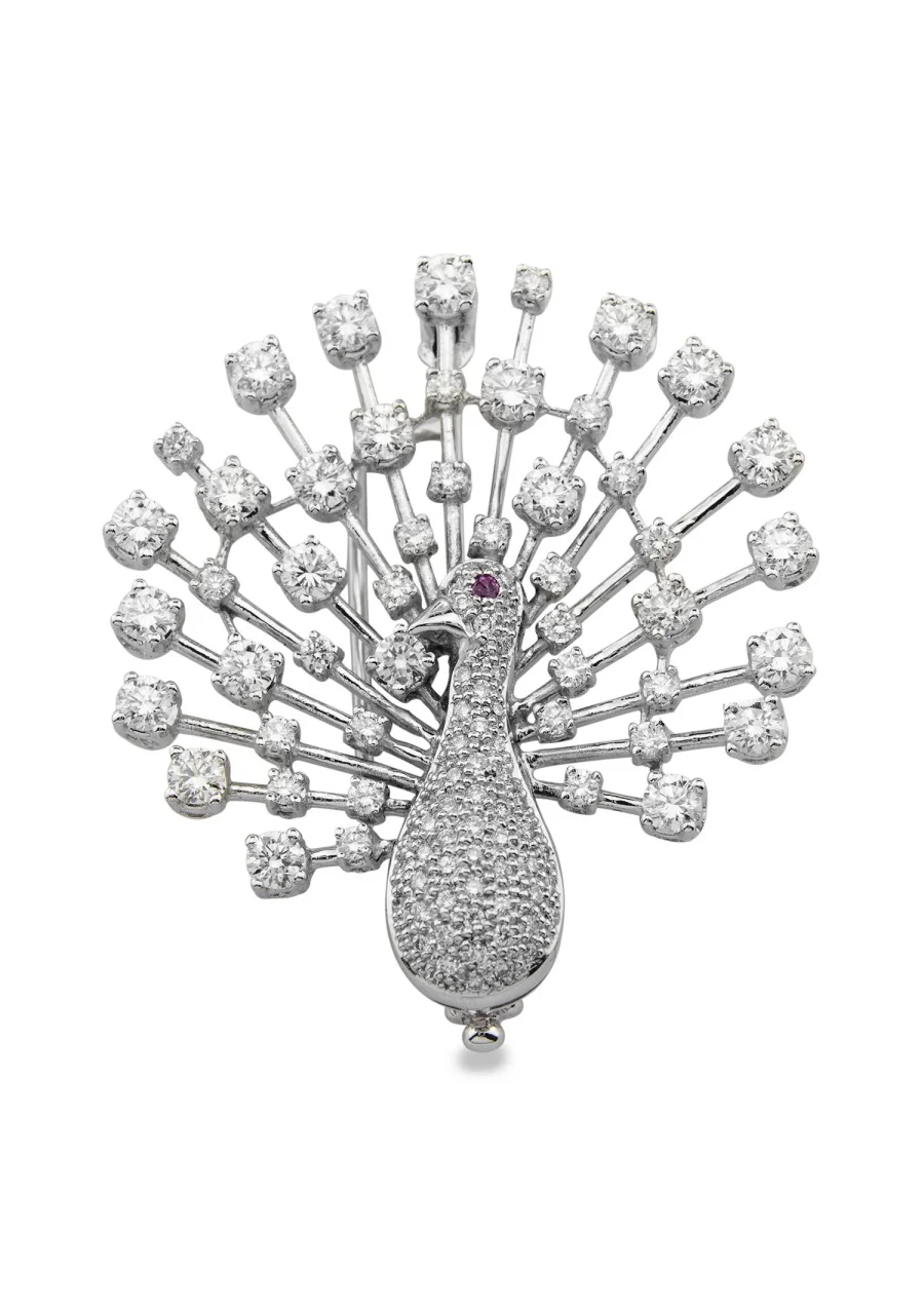 Broche PITTI PEACOCK en oro blanco de 18K y diamantes
