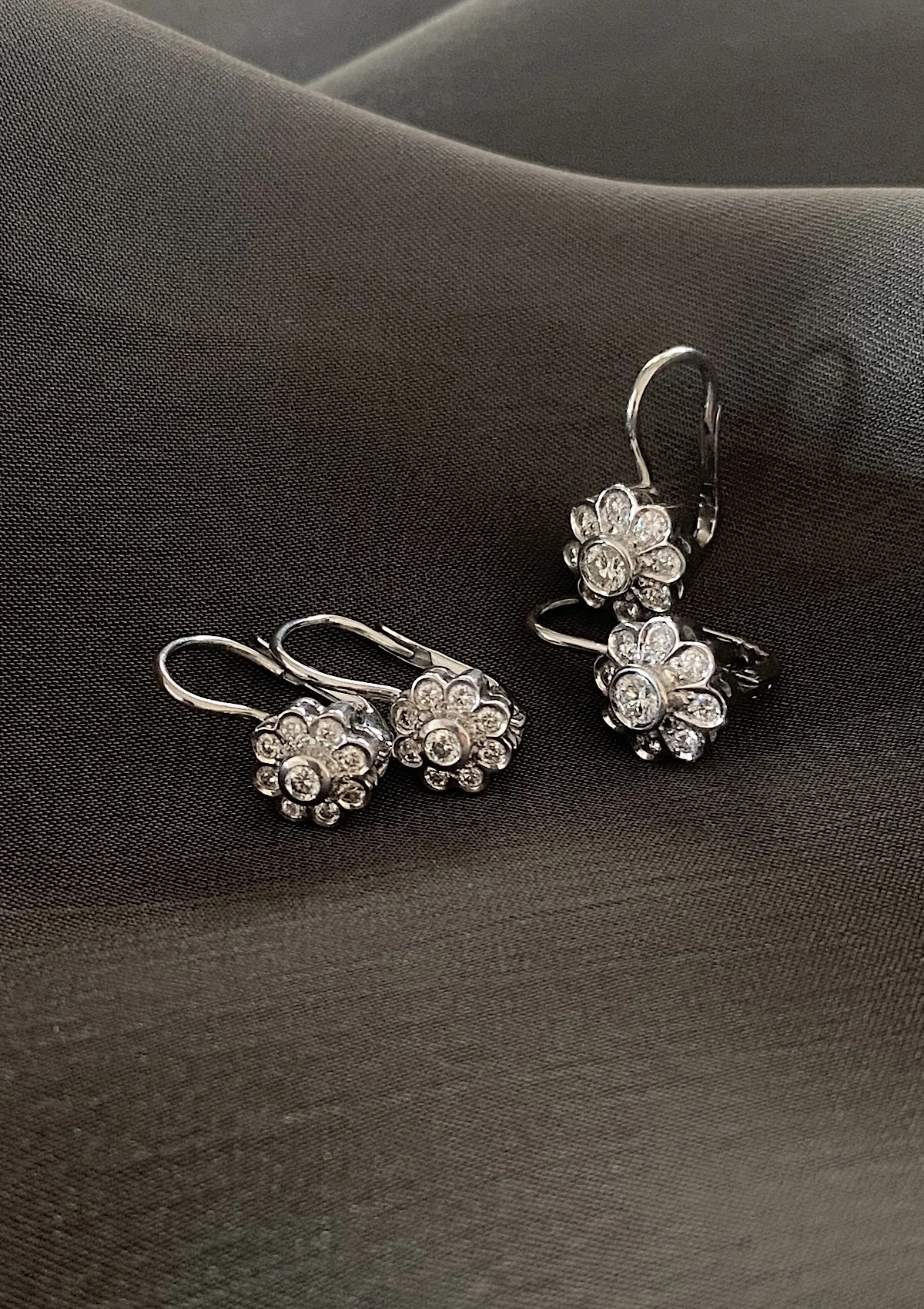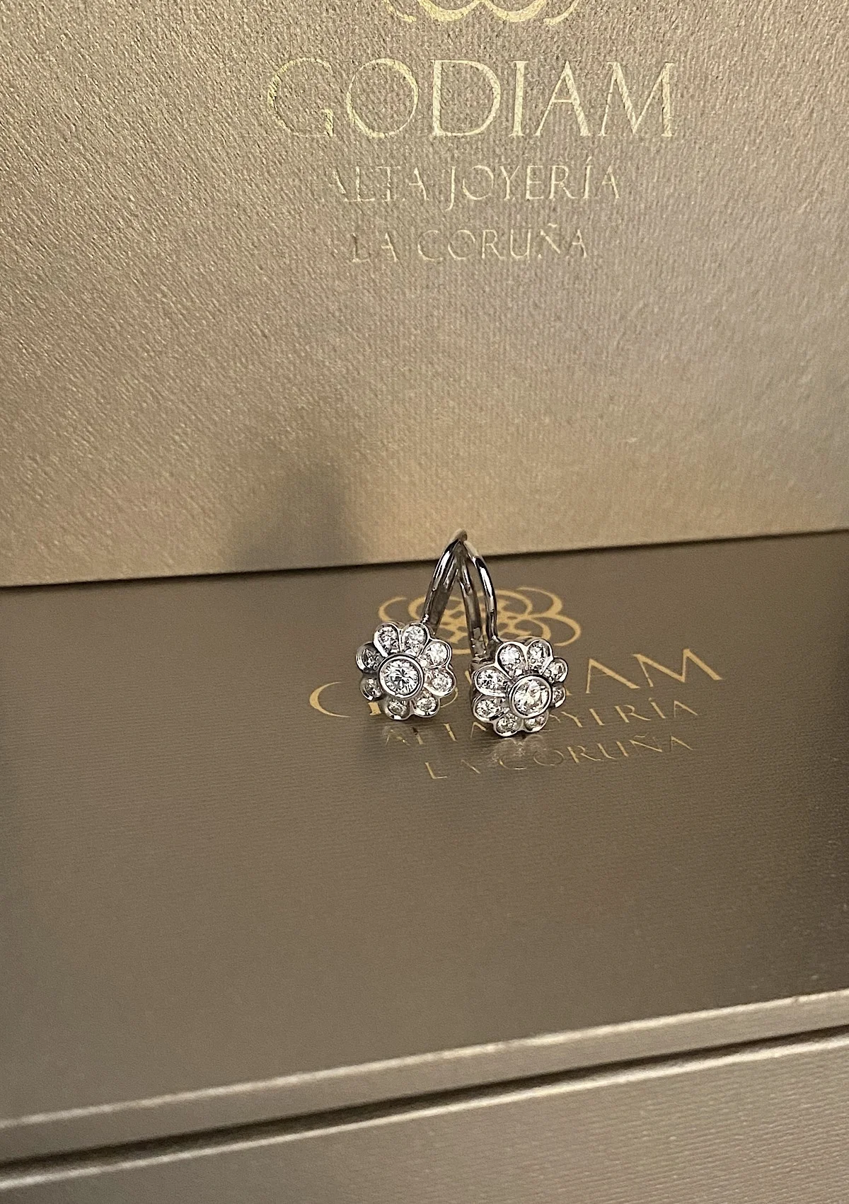 Pendientes MARGARITA BABY en oro blanco de 18K y roseta de diamantes