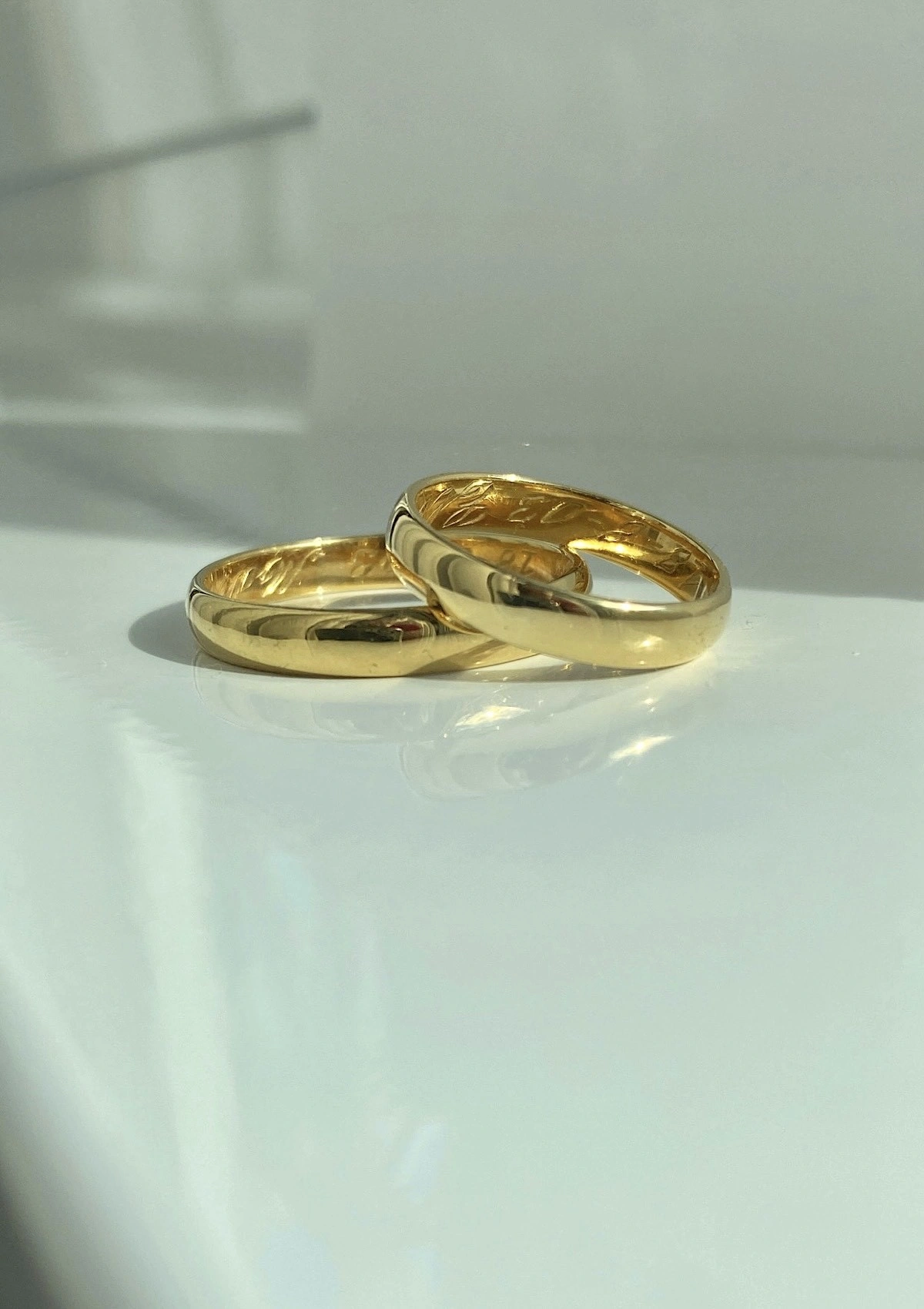 Alliance Classique Iconique by Godiam en demi-rond réalisée en or 18 carats dans différentes nuances.