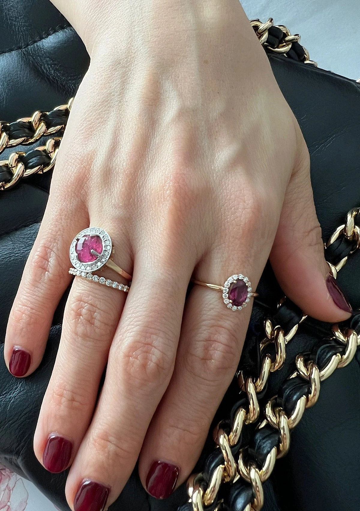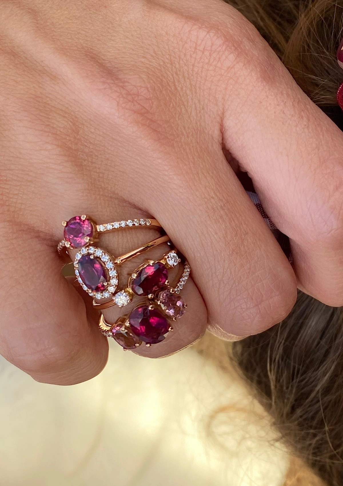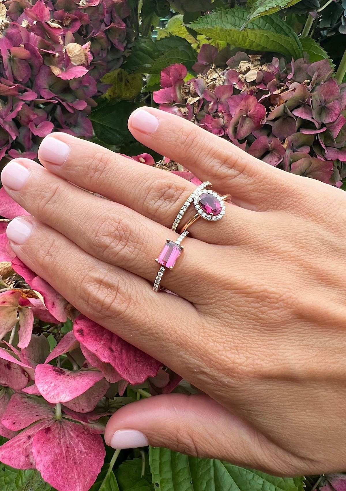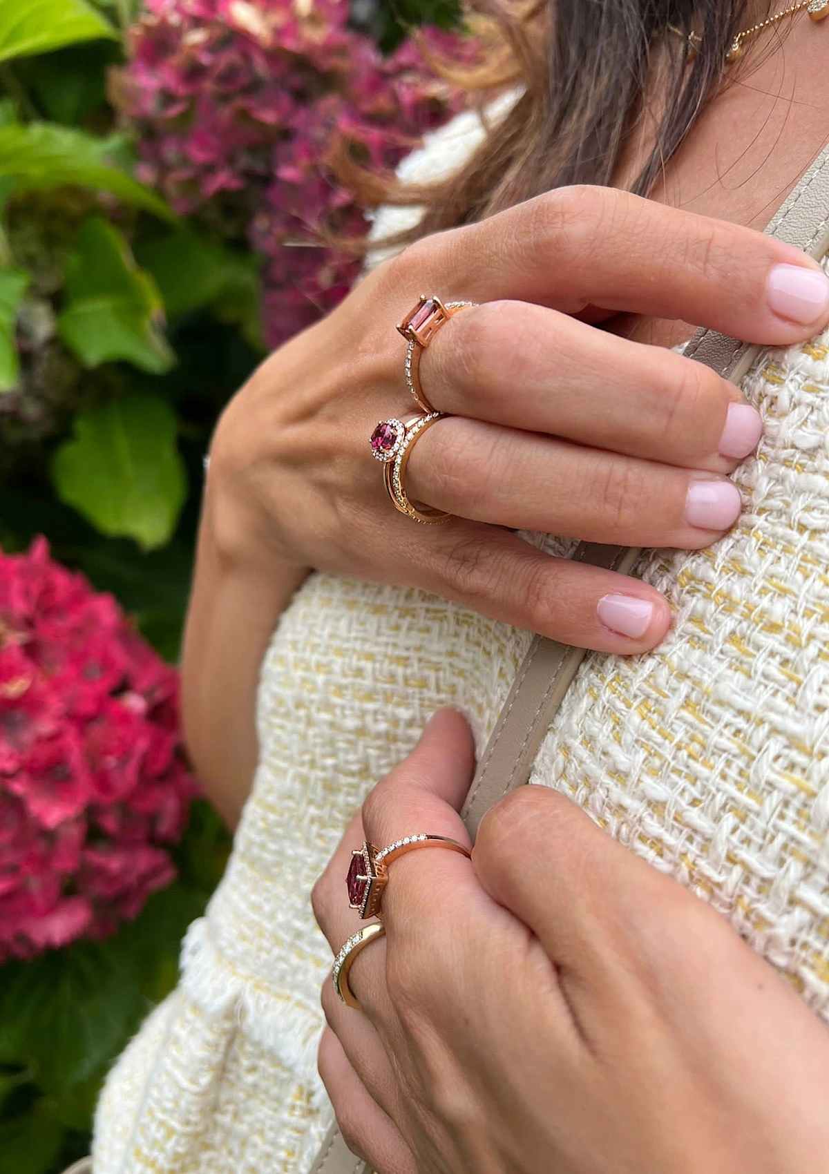 Bague SONREIRAS en or rose 18K avec diamants et tourmaline rose