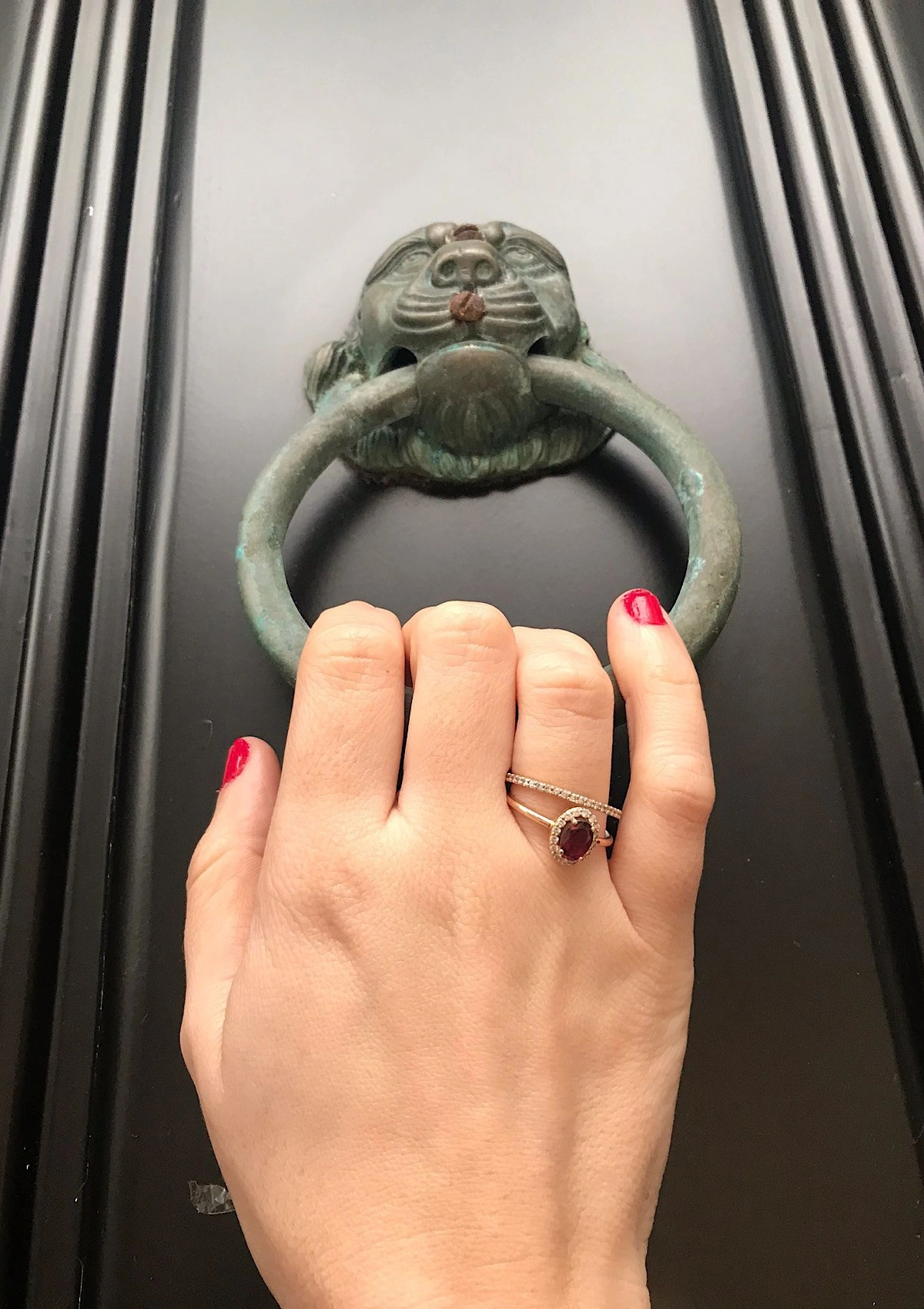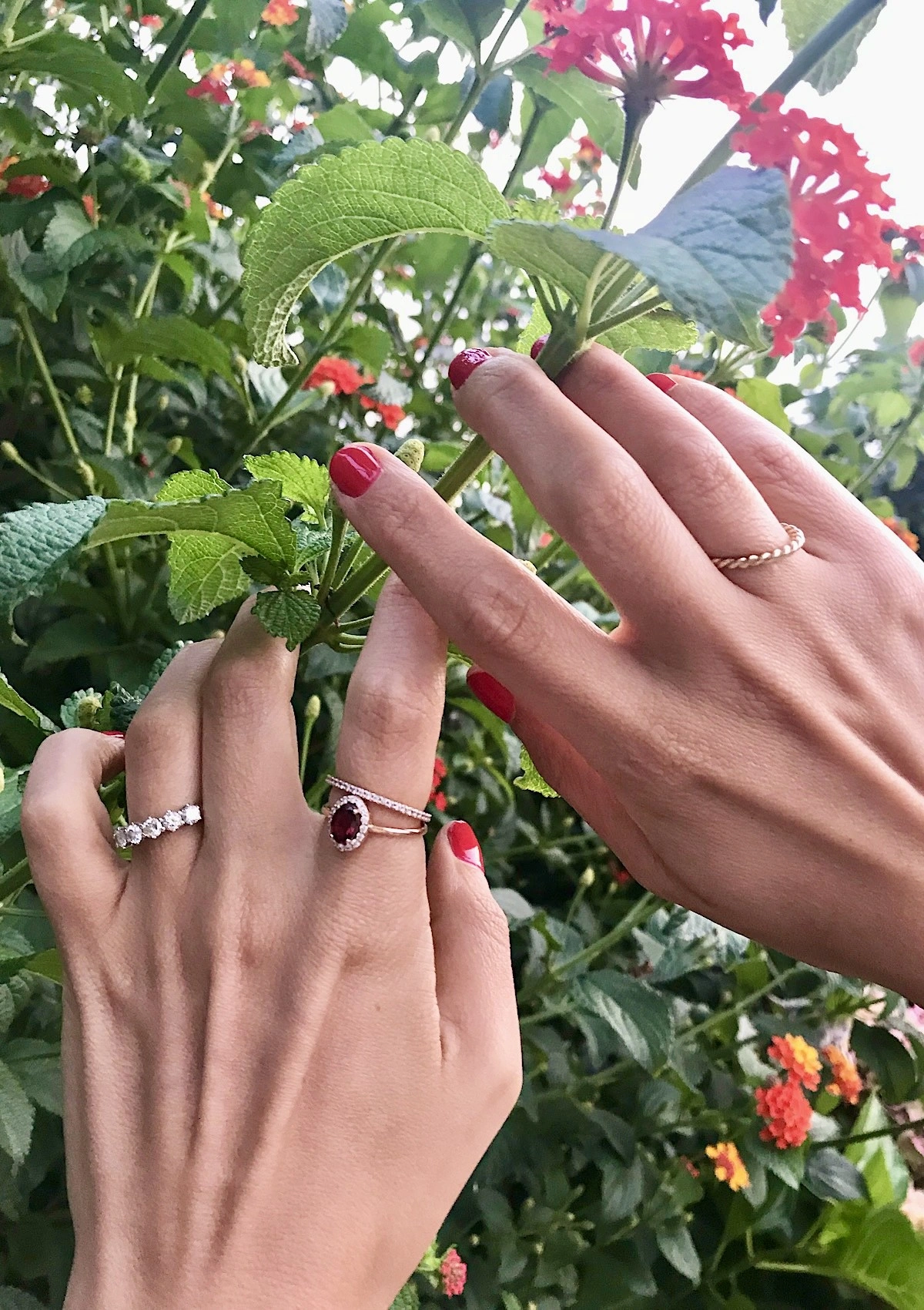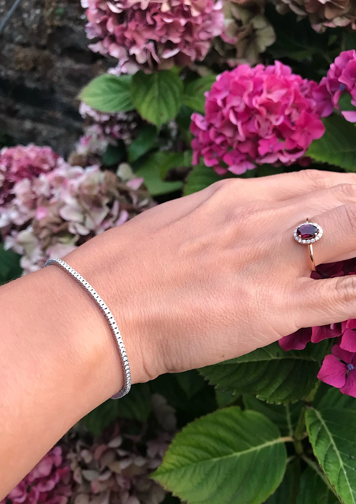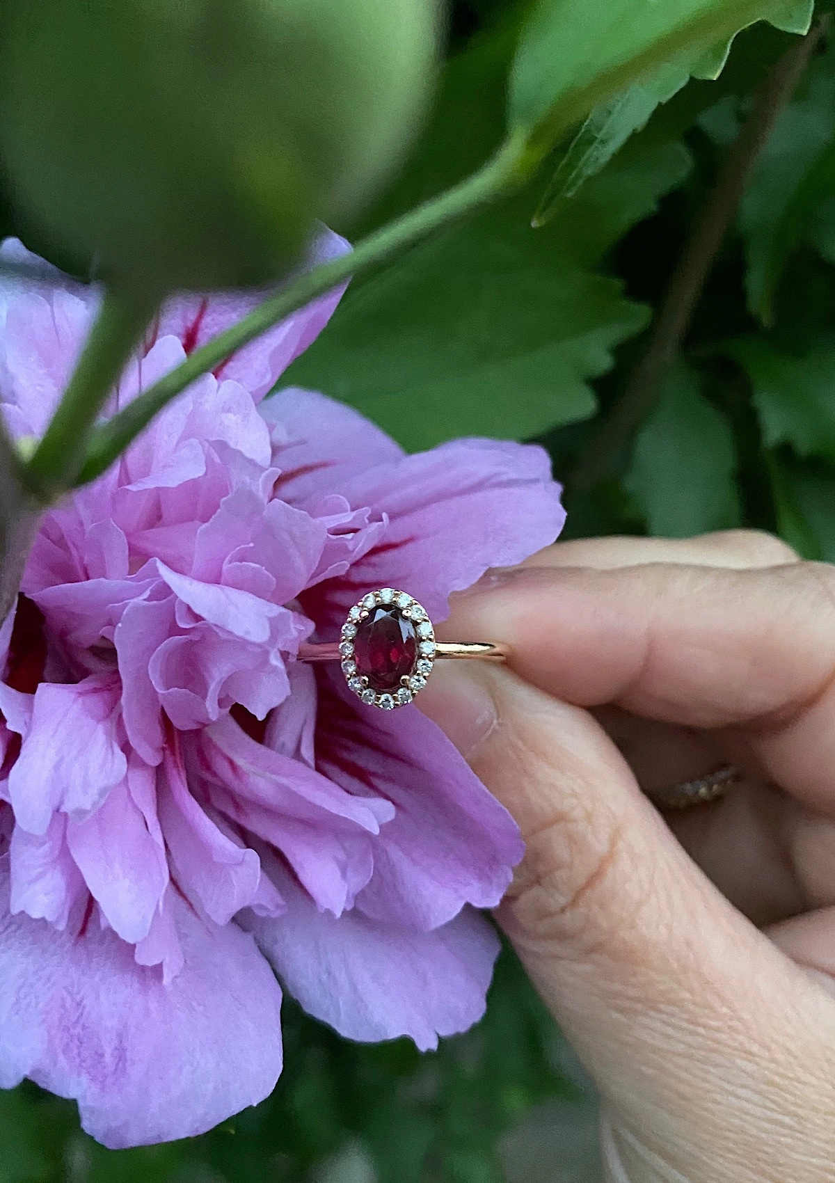 Bague SONREIRAS en or rose 18K avec diamants et tourmaline rose