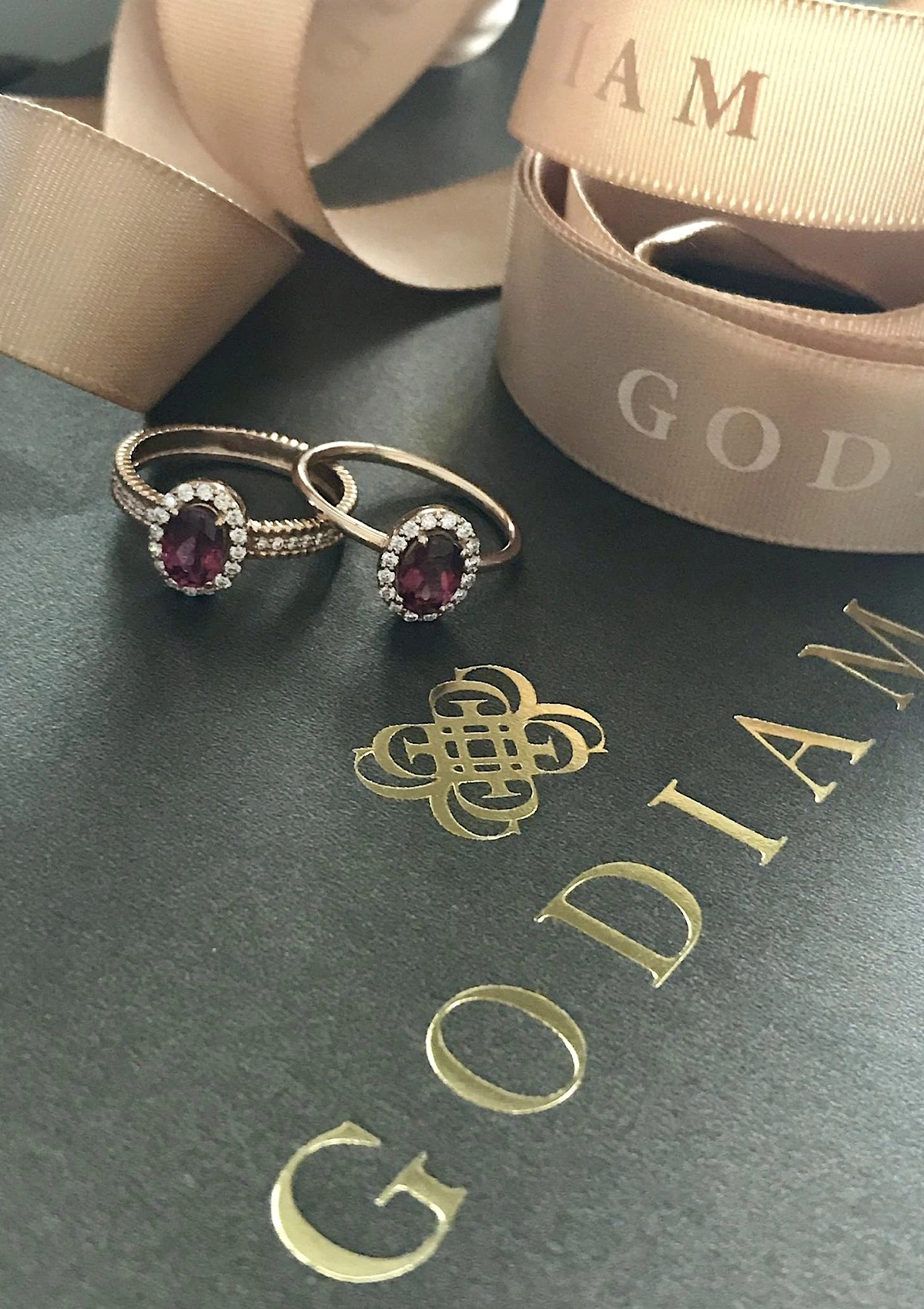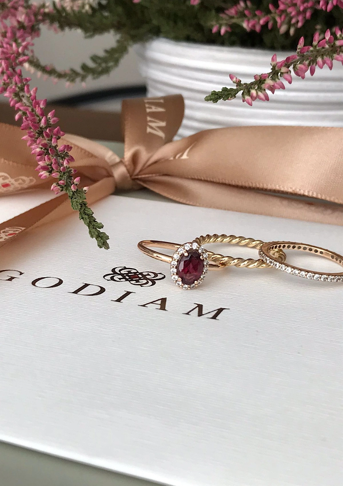 Bague SONREIRAS en or jaune 18K avec diamants et améthyste
