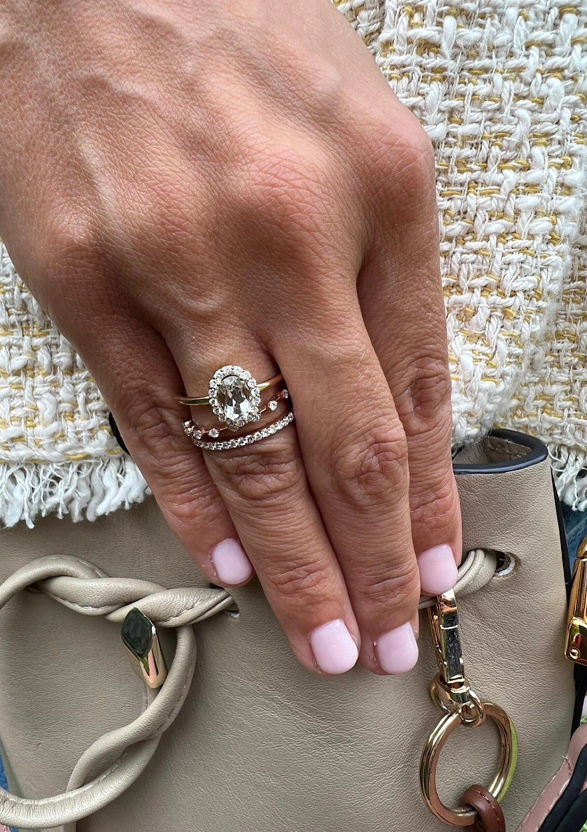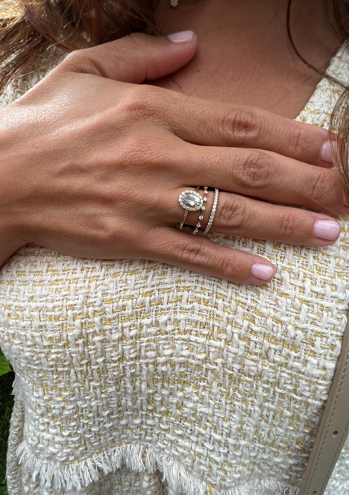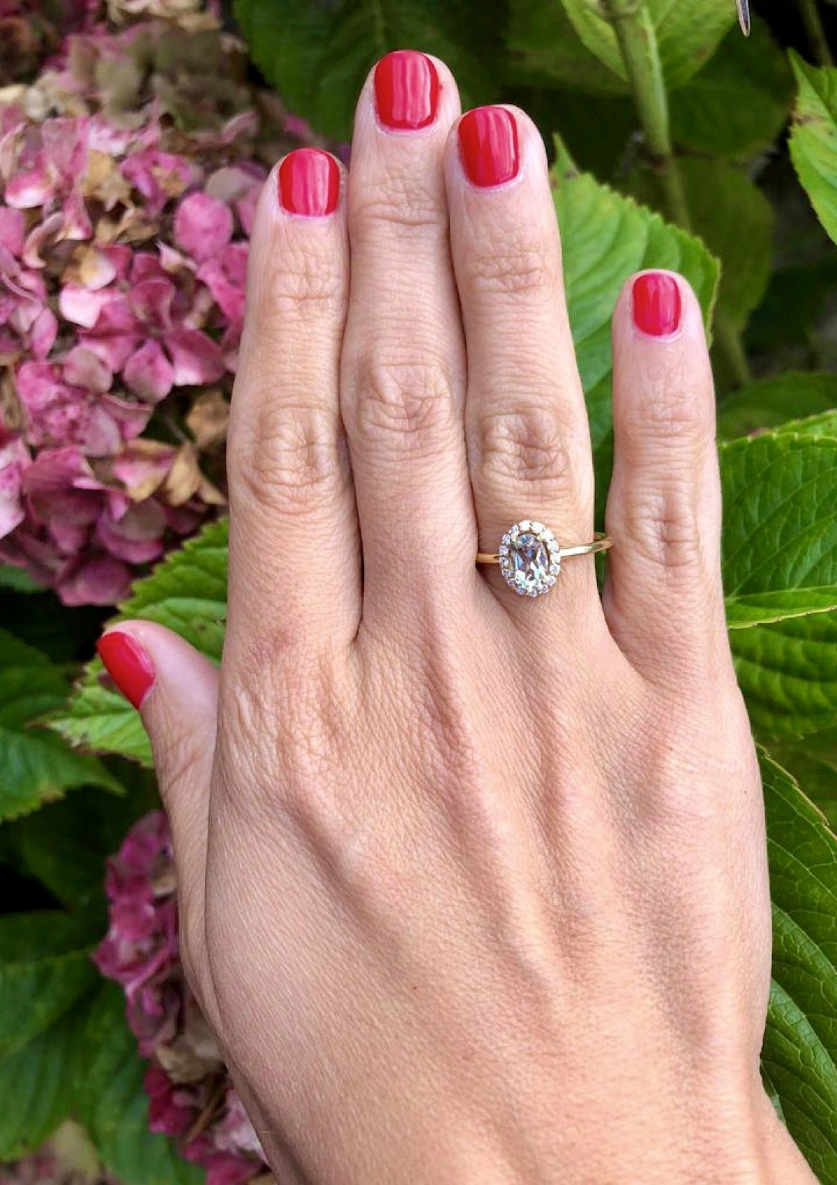 Bague BURBUJAS en or rose 18K avec halo de diamants et tourmaline rose