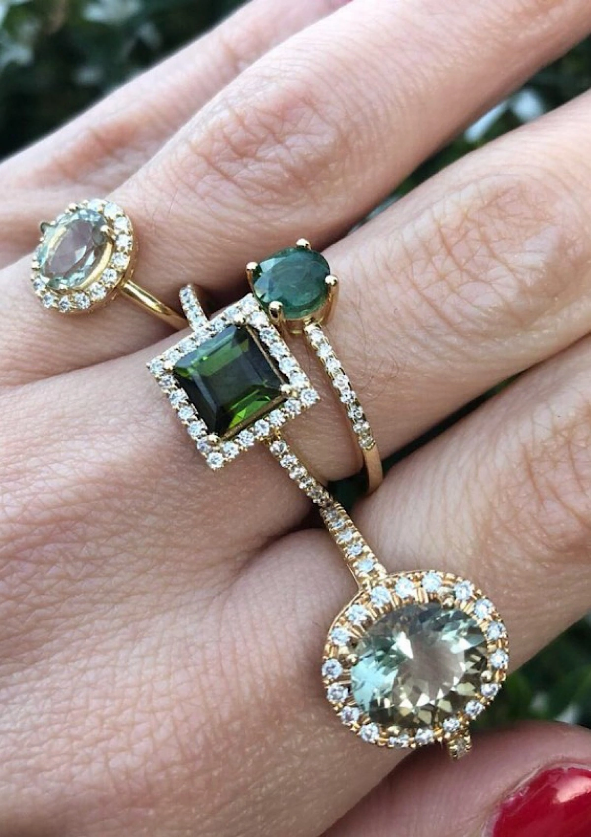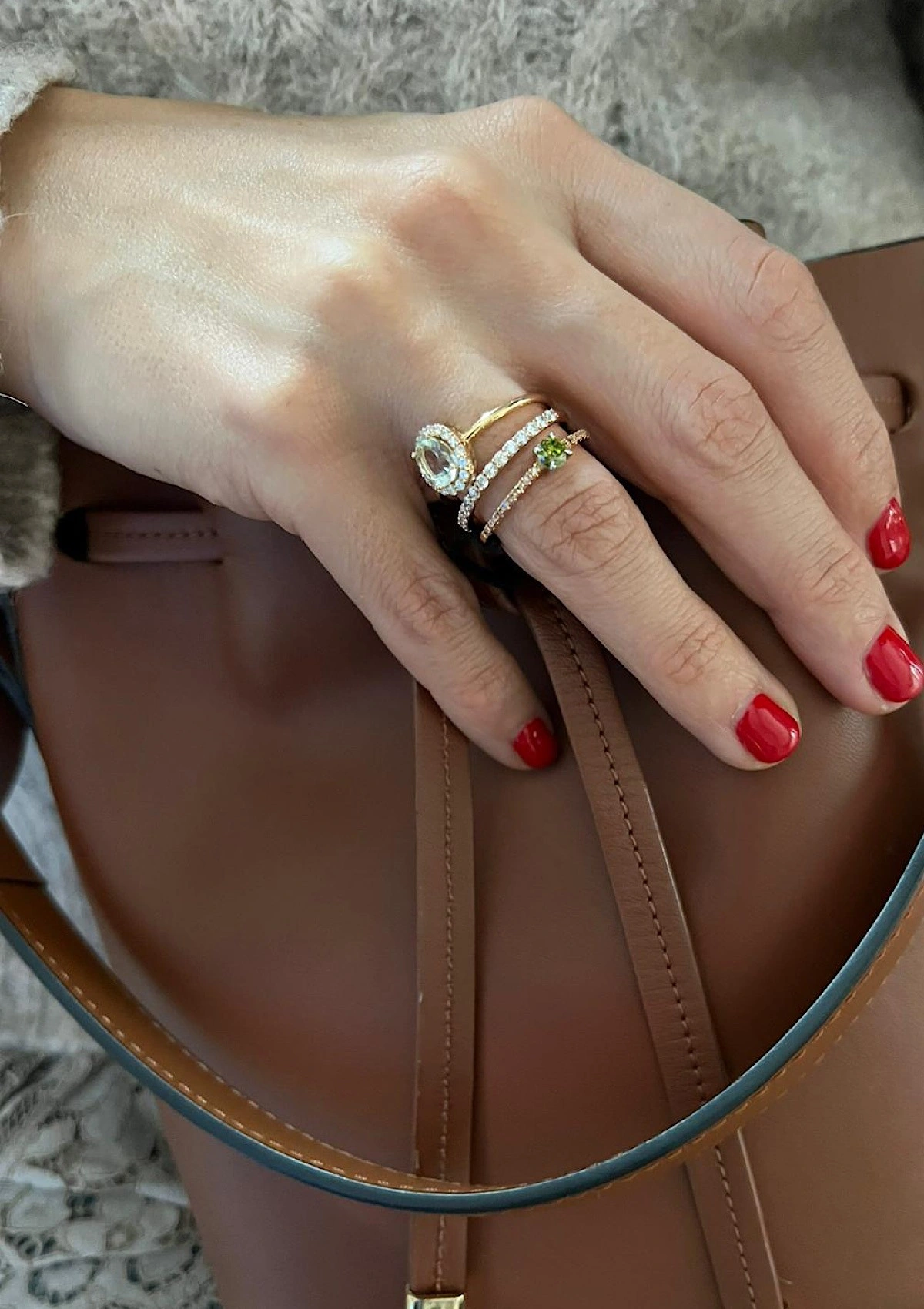 Anillo LUCÍA en oro amarillo de 18K con diamantes y Turmalina verde