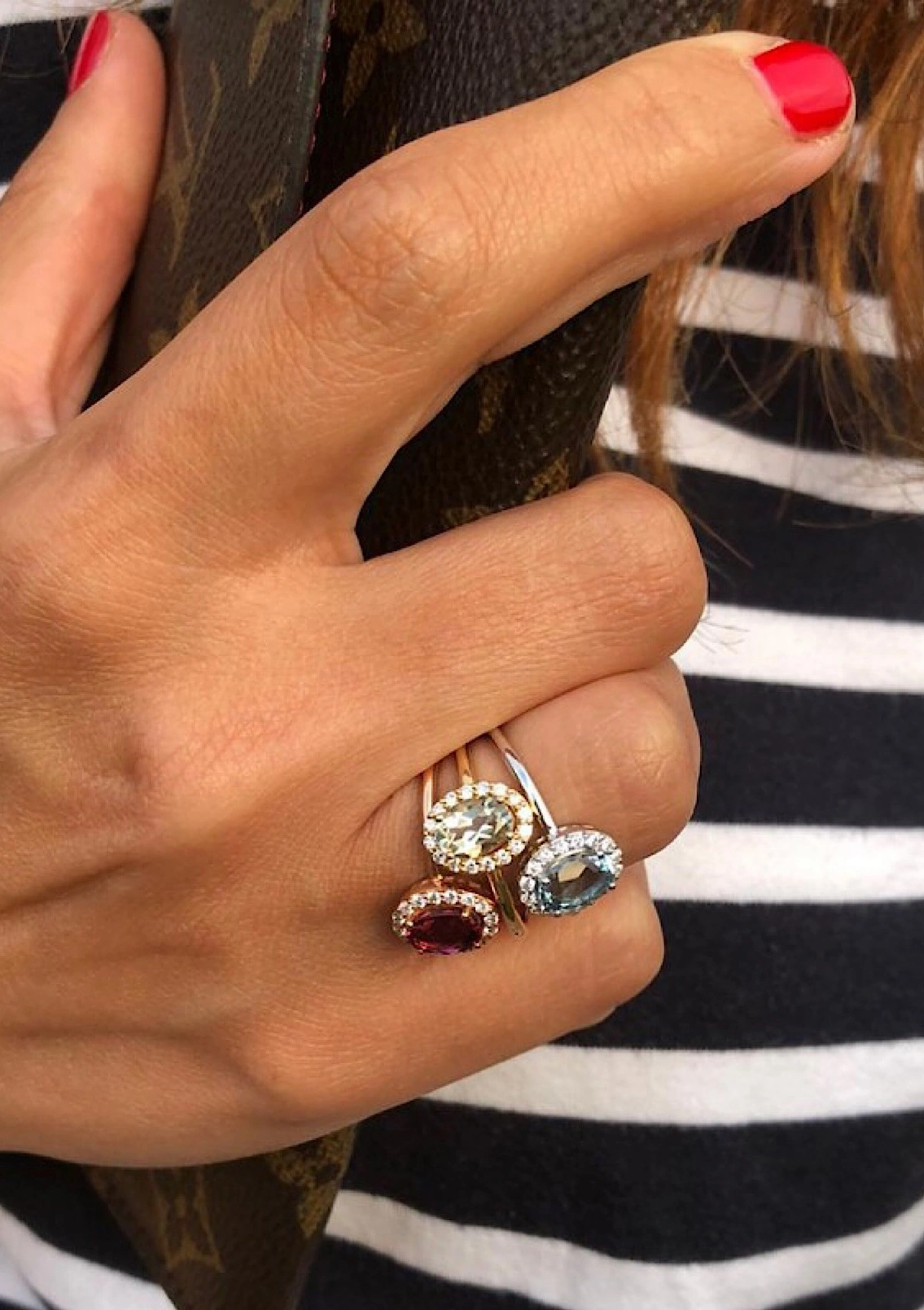 Anillo LUCÍA en oro rosa de 18K con diamantes y Turmalina rosa