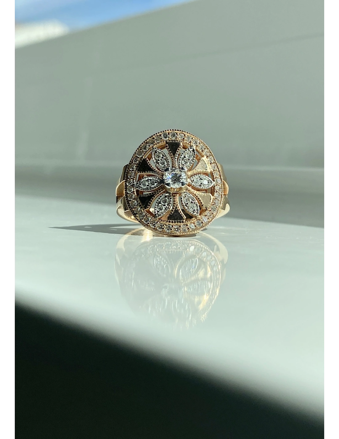 La bague vintage DUOMO vous séduira dès le premier instant. Un Bijou exquis, intemporel, audacieux et ambitieux qui sublimera même les looks les plus simples avec style et distinction. Son design, inspiré de l'élégance classique, est réinventé avec une touche avant-gardiste, créant une pièce parfaite pour les amateurs d'art et d'exclusivité. Chaque détail subtil reflète un savoir-faire impeccable. L'harmonie entre les tons chauds de l'or rose se marie à la pureté de l'or blanc, sublimant l'éclat des diamants à chaque mouvement.