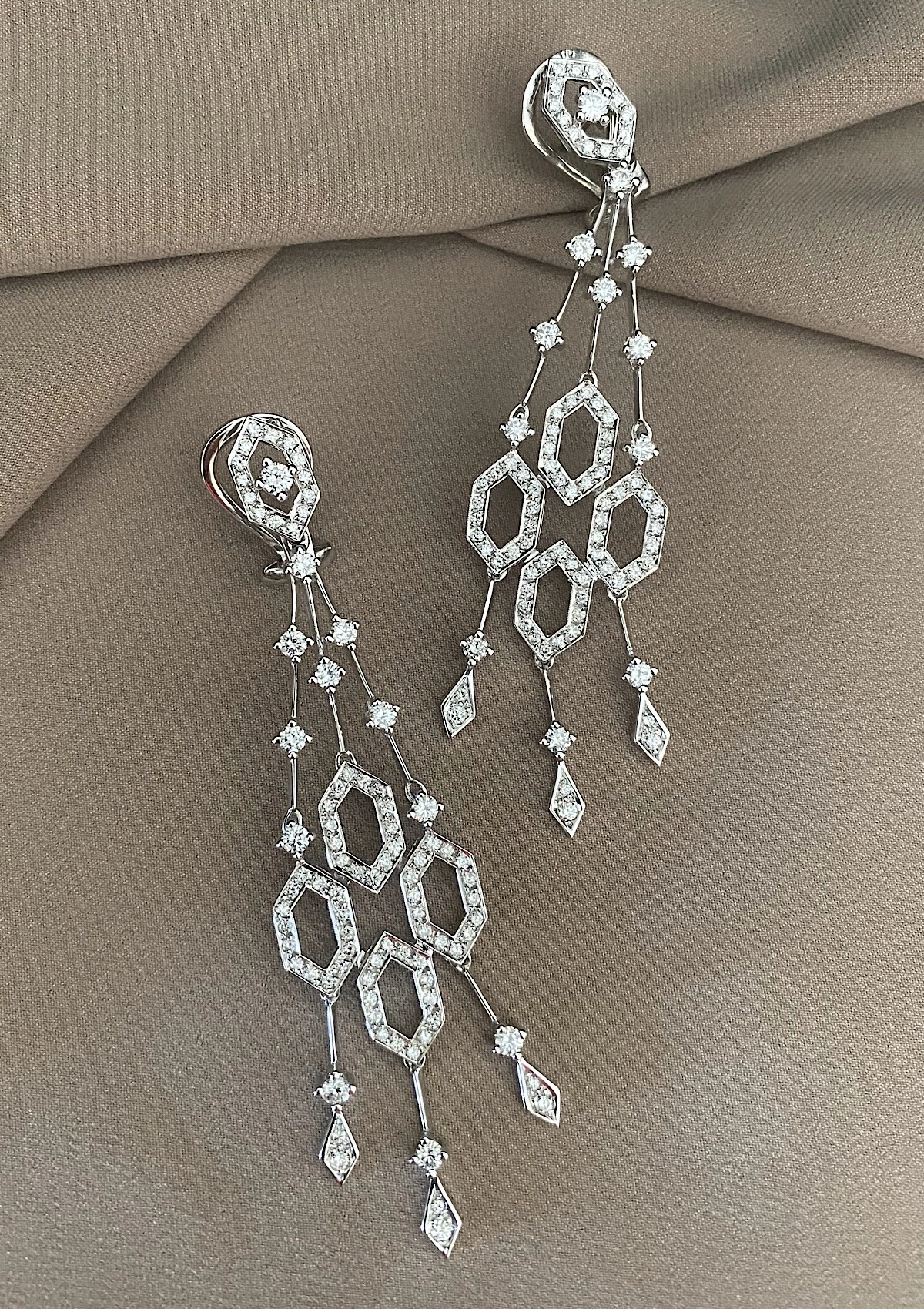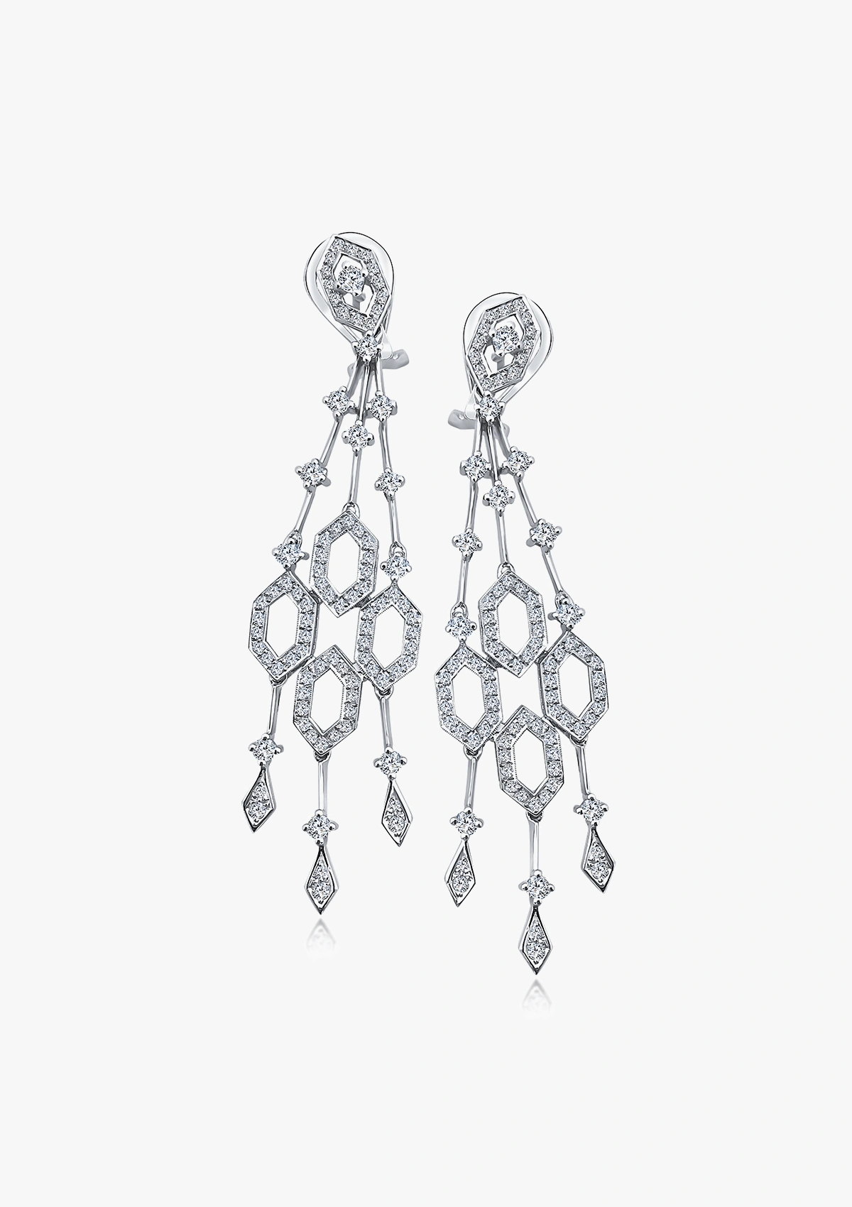 Pendientes largos LANAI en oro blanco de 18K con diamantes y ópalos rosas