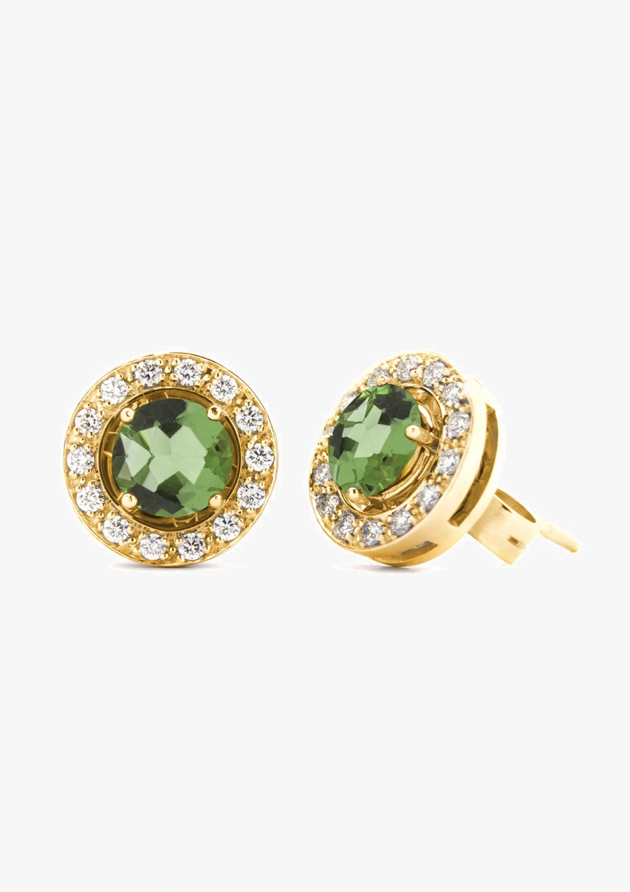 Boucles d'oreilles VIVA-LA-VIDA en or blanc 18K avec un halo de diamants et d'émeraudes