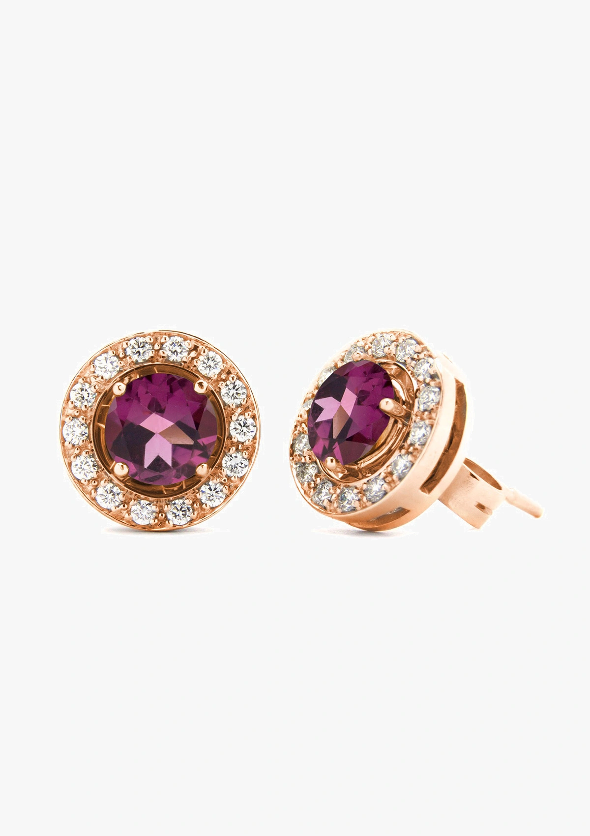Belles et délicates boucles d'oreilles transformables en or rose 18 carats ornés de halos de diamants taille brillant et des tourmalines roses.