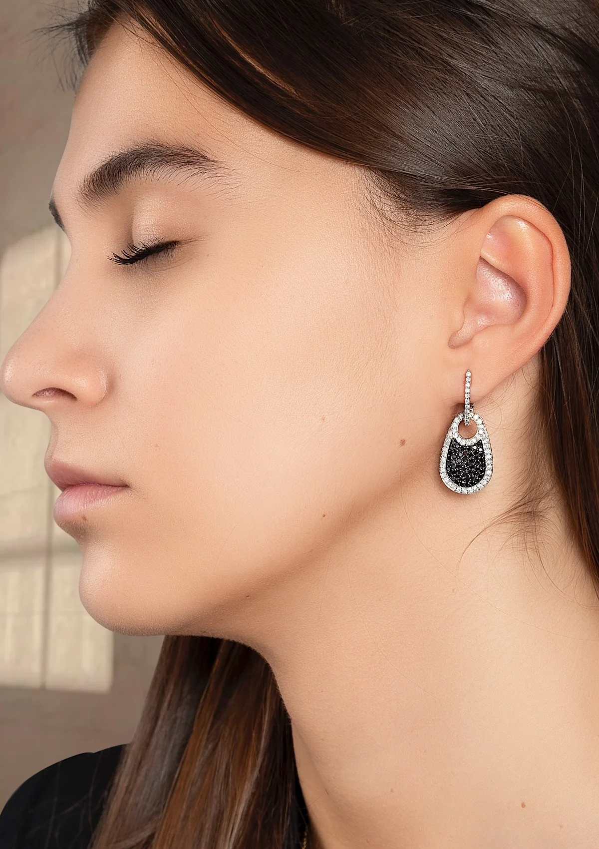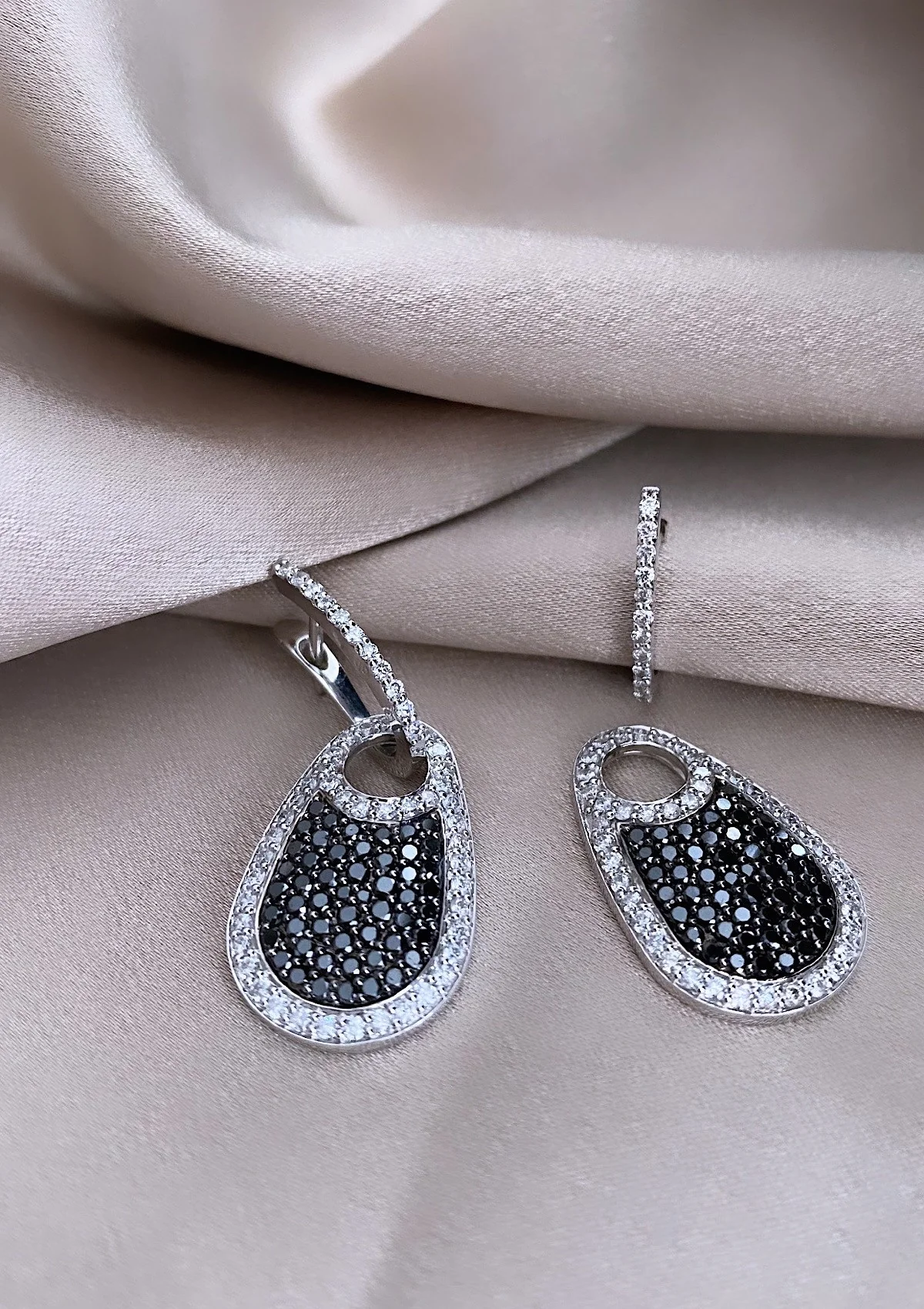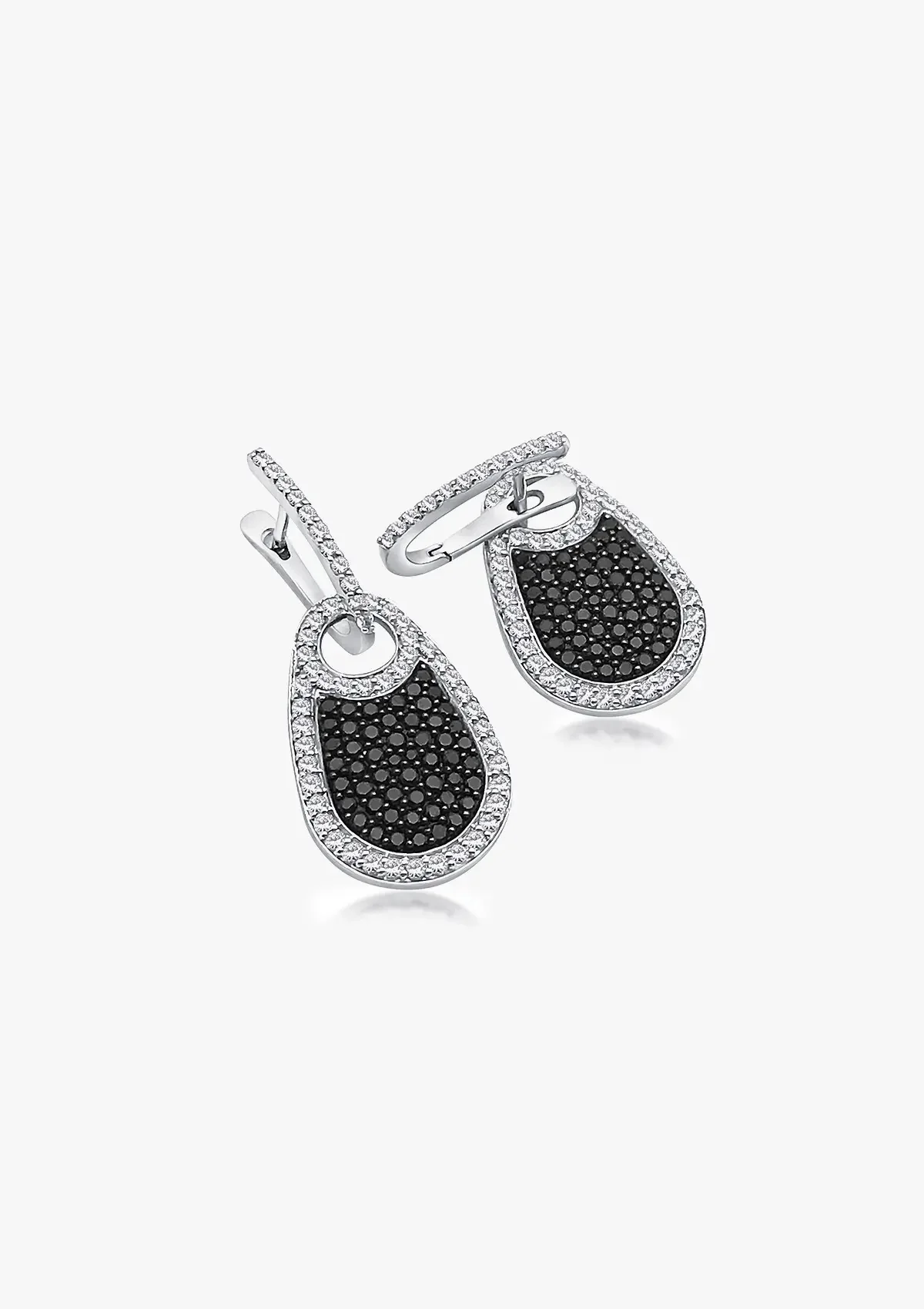 Pendientes CELINE en Oro Blanco de 18K con pavé de diamantes negros y blancos talla brillante