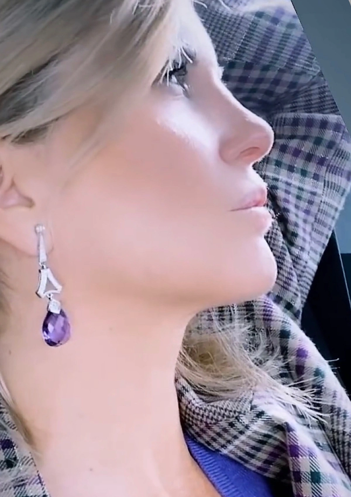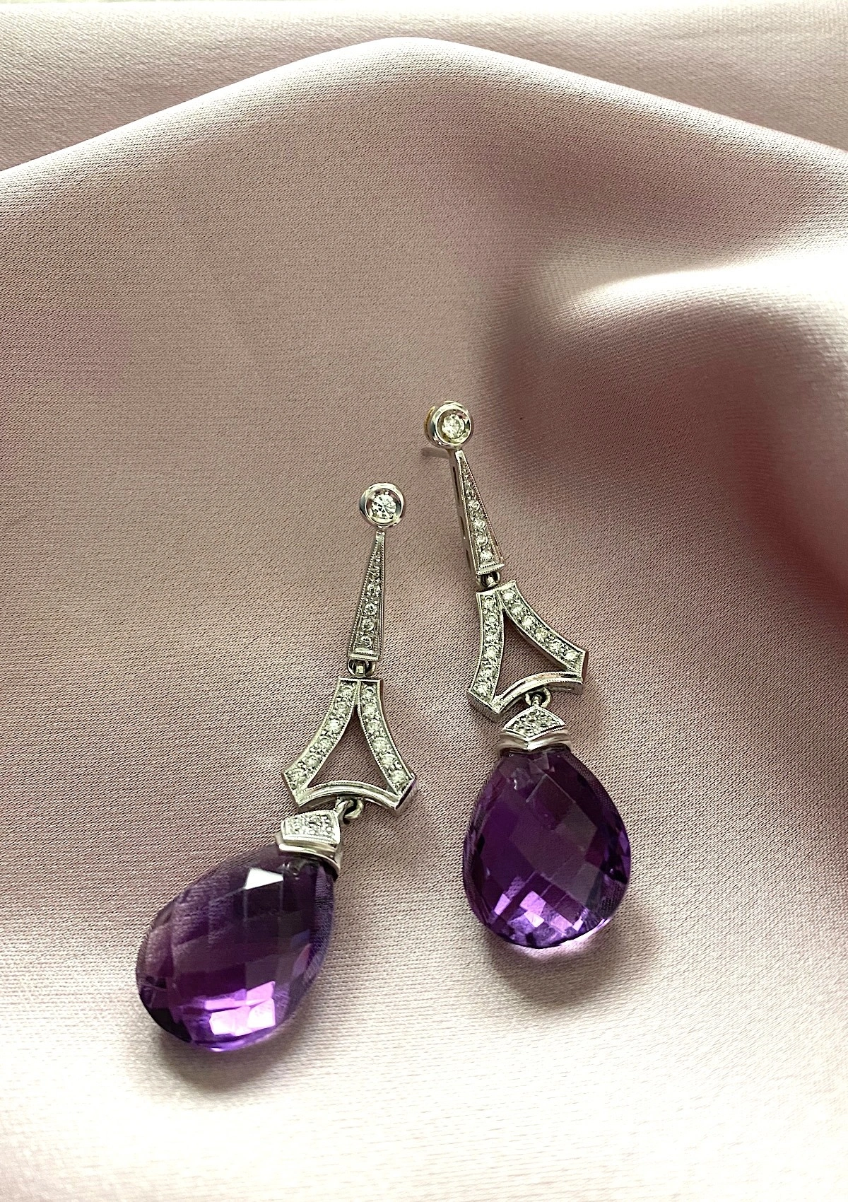 Boucles d'oreilles MALDIVAS en or blanc 18 carats avec diamants et améthystes, topazes...