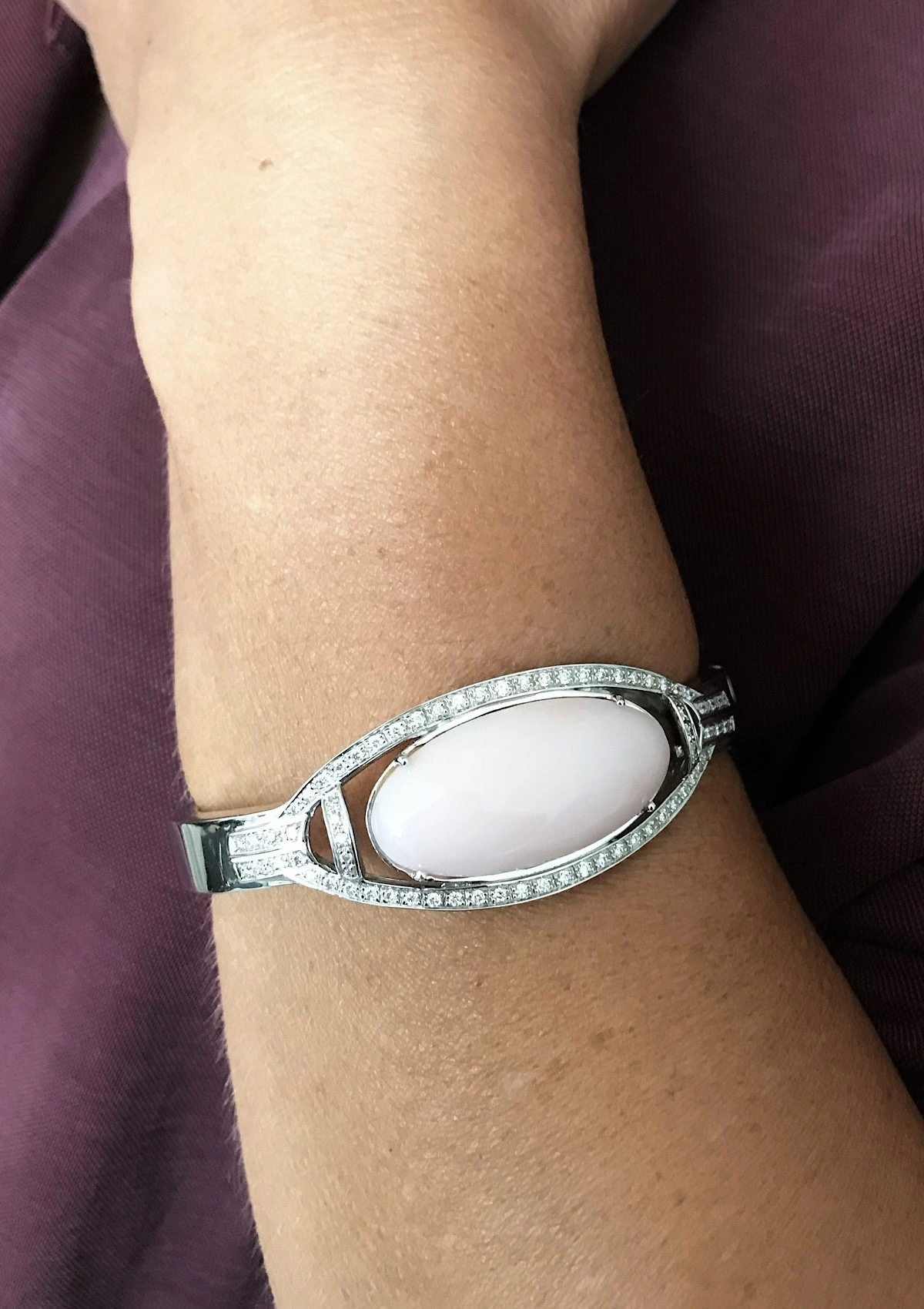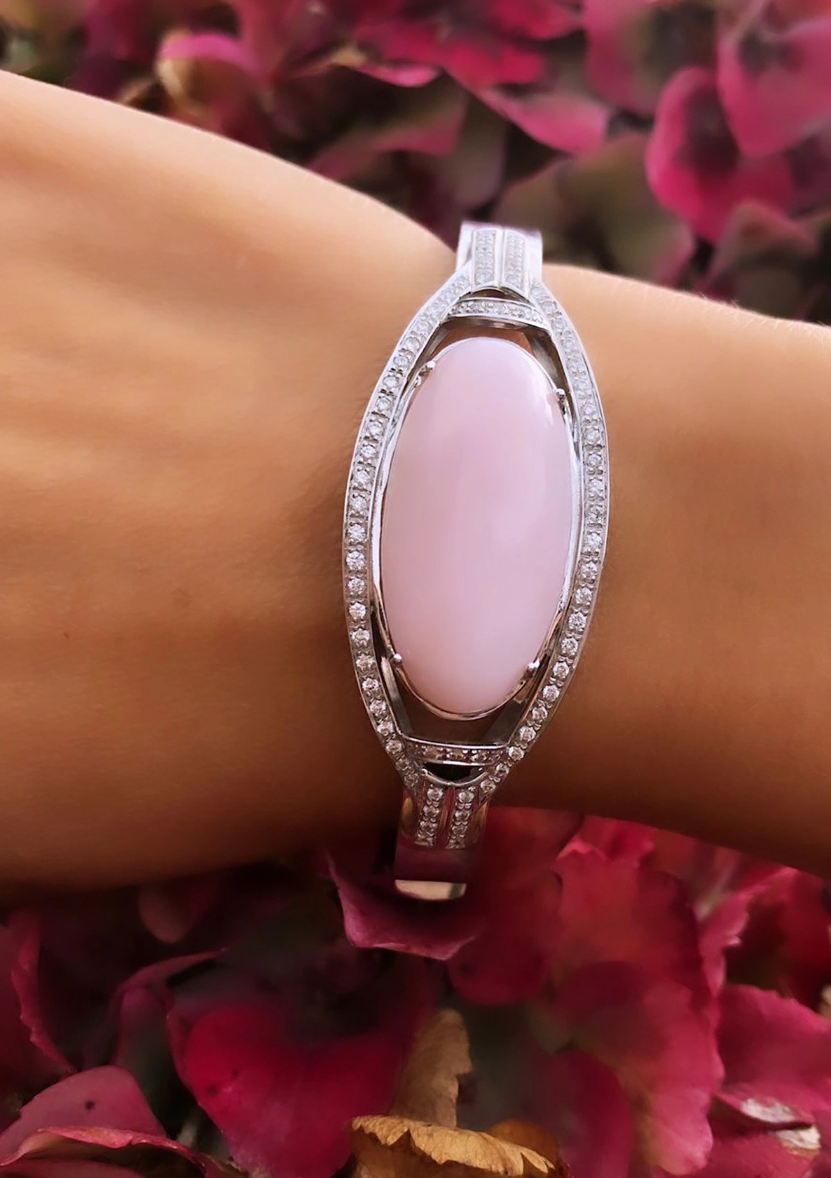 Bague IRENE en or blanc 18K avec diamants et corail rose
