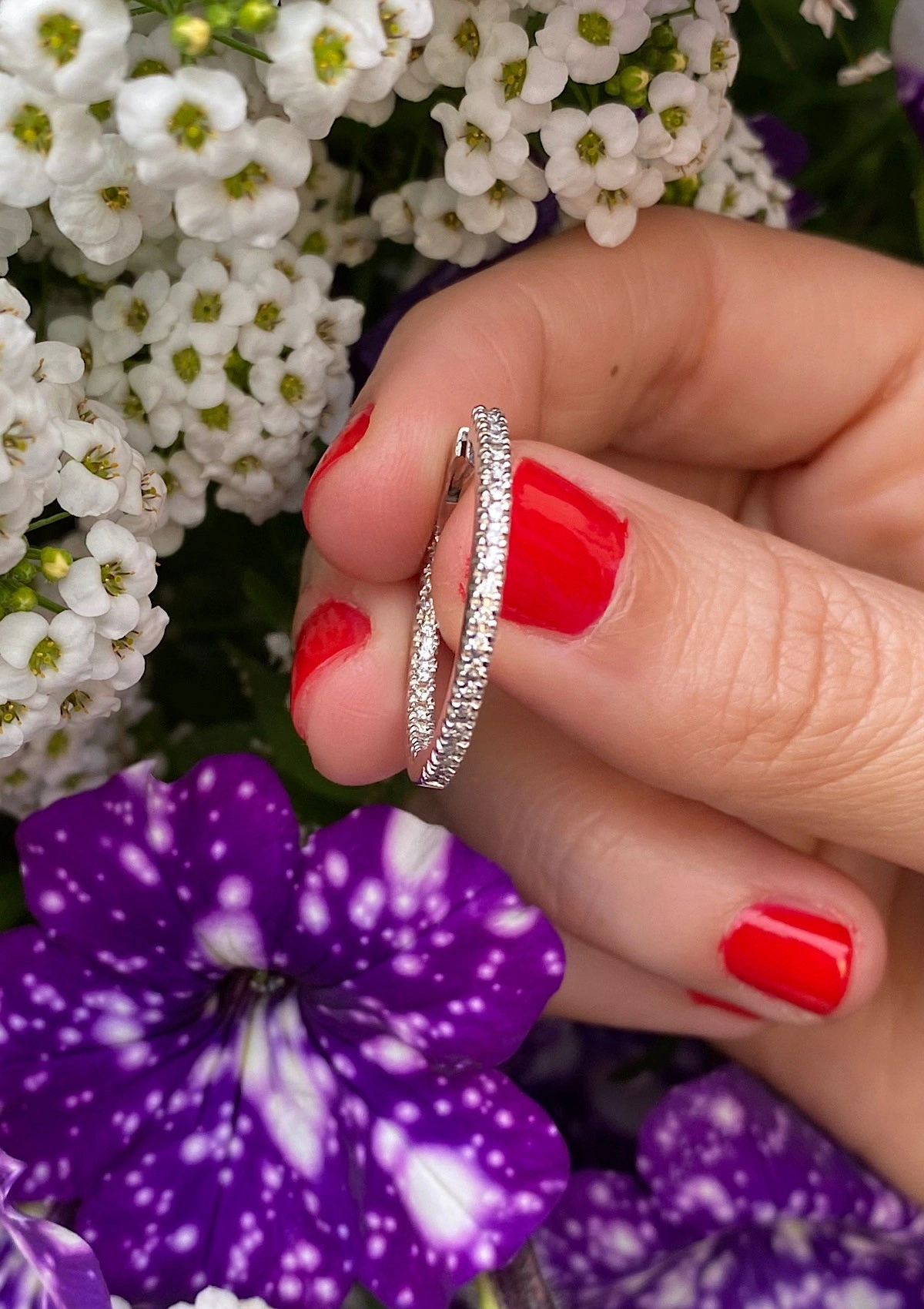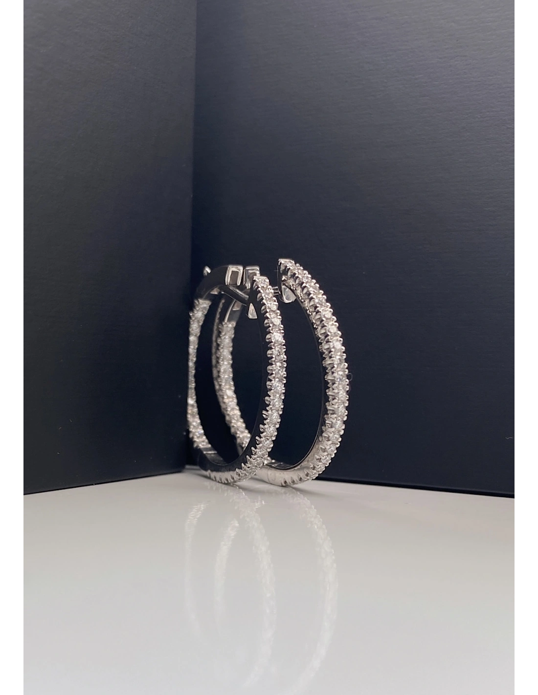 Belles boucles d'oreilles créoles de taille moyenne en or 18 carats avec diamants taille brillant.