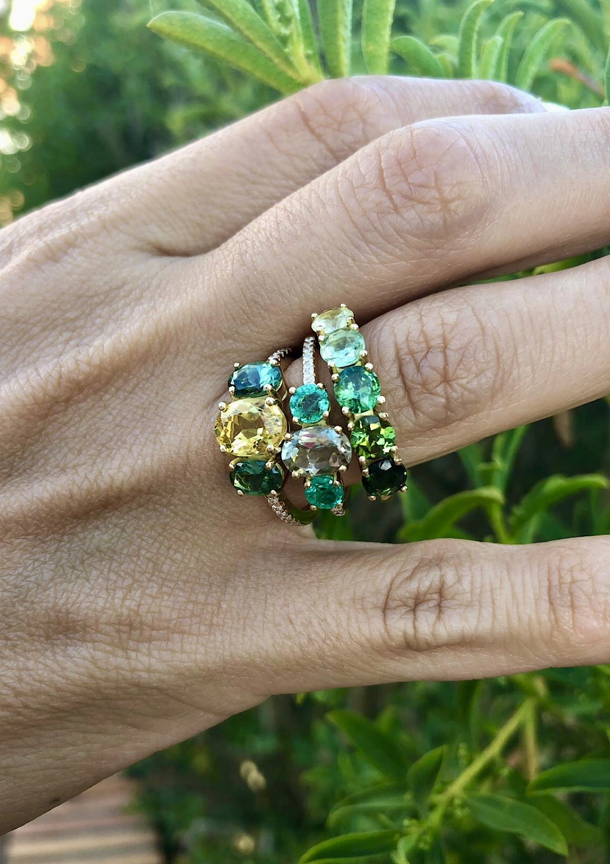 Anel GREEN DEGRADÊ em ouro amarelo de 18 quilates com turmalinas verdes e crisoberilo