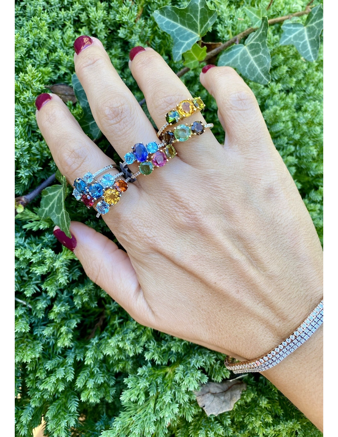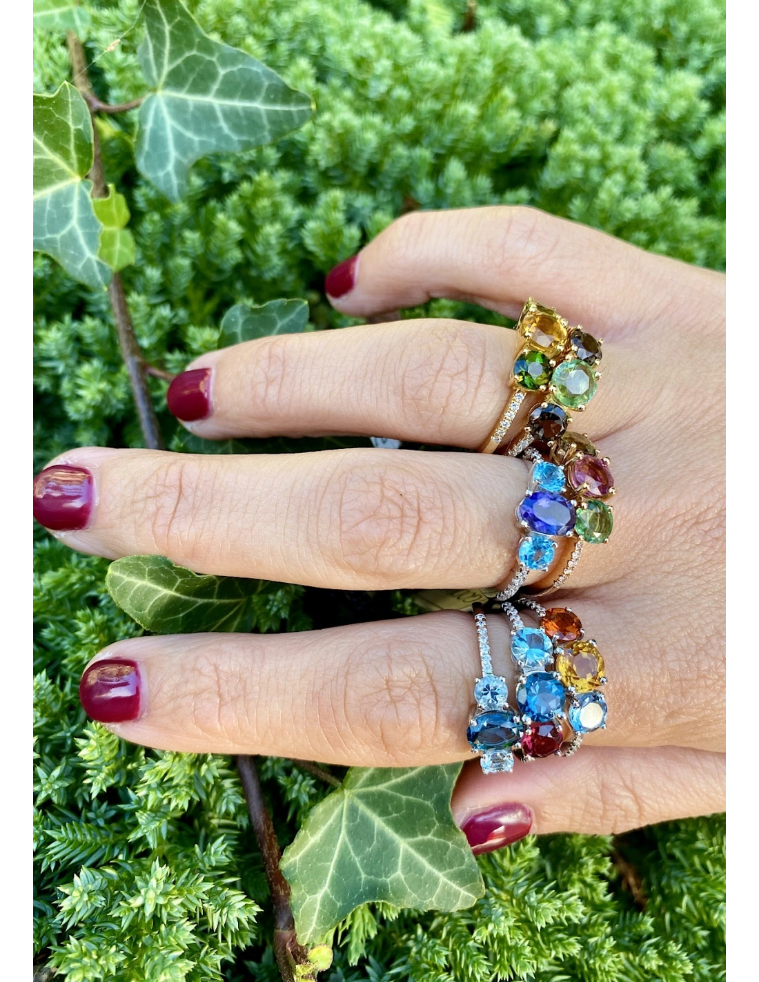 Para qualquer outra combinação de pedras preciosas naturais no anel trilogia TRIBECA em Ouro Amarelo 18K, envie um e-mail para info@godiamjewelry.com ou uma mensagem de WhatsApp para (+34) 615092156 e informe a sua preferência.
