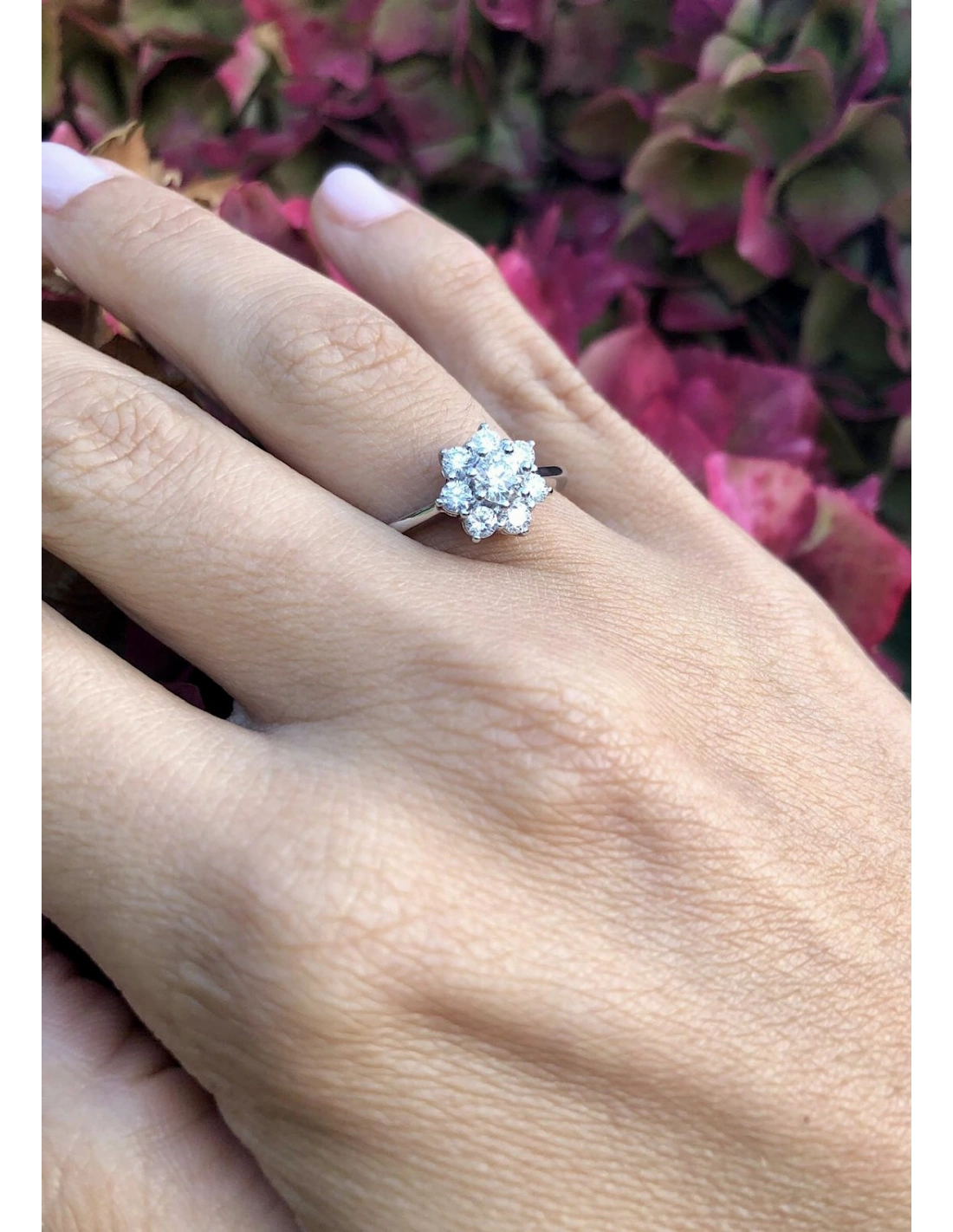 Anel ANDREA em ouro branco 18K e roseta de diamantes