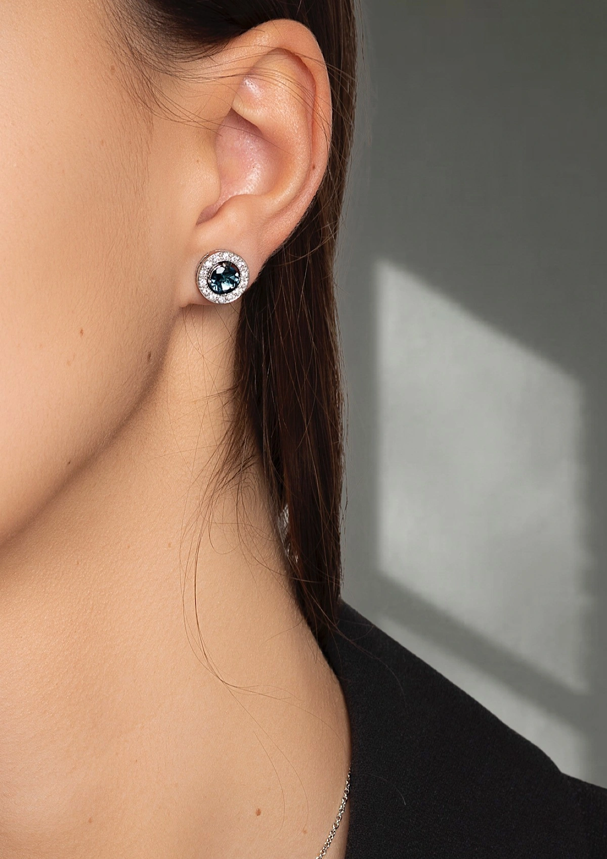 - 2 topázios London Blue de lapidação brilhante com 6mm de diâmetro de alta qualidade (grau AAA), com 1,74 ct. (os pesos podem variar ligeiramente consoante com a lapidação de cada gema).