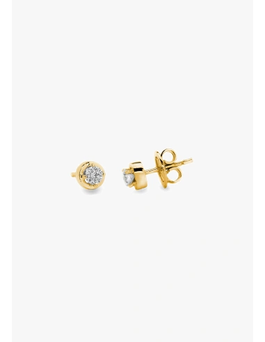 Uma coleção de brincos de botão feitos de ouro amarelo de 18 quilates com diamantes lapidados brilhantes com engaste em garra 4 pontas e fechos de pressão de alta segurança.