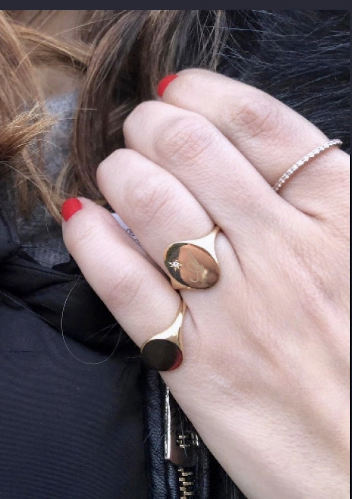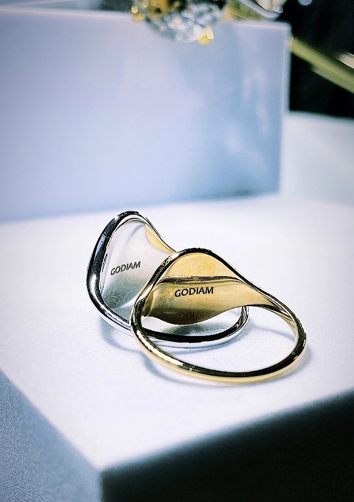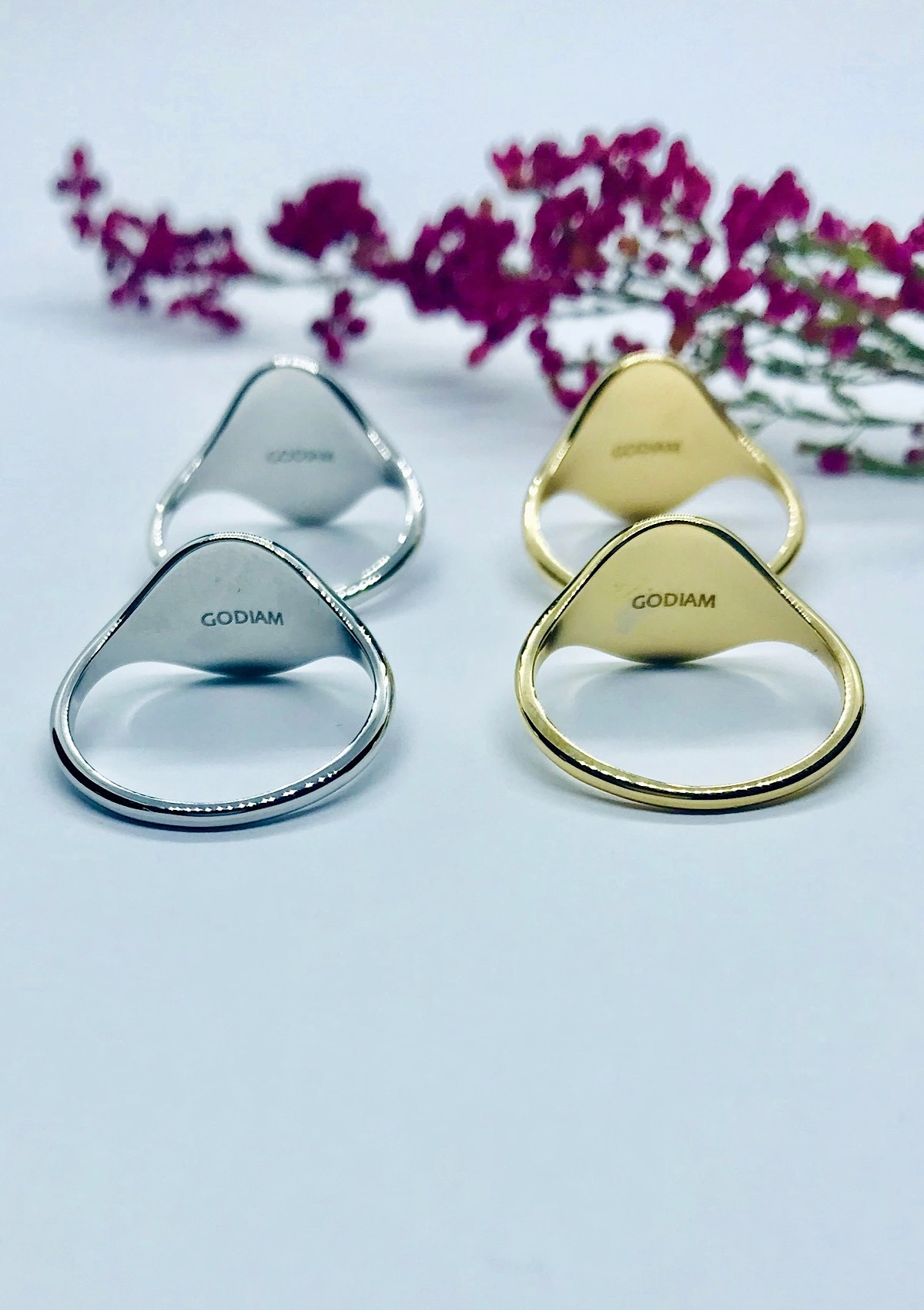 Se pretende o seu anel ROUND SIGNET em ouro amarelo de 18 quilates gravado com a sua inicial e um diamante, apenas com a sua inicial ou apenas com um diamante, escreva para info@godiamjewelry.com ou envie um WhatsApp para o número (+34) 615092156
