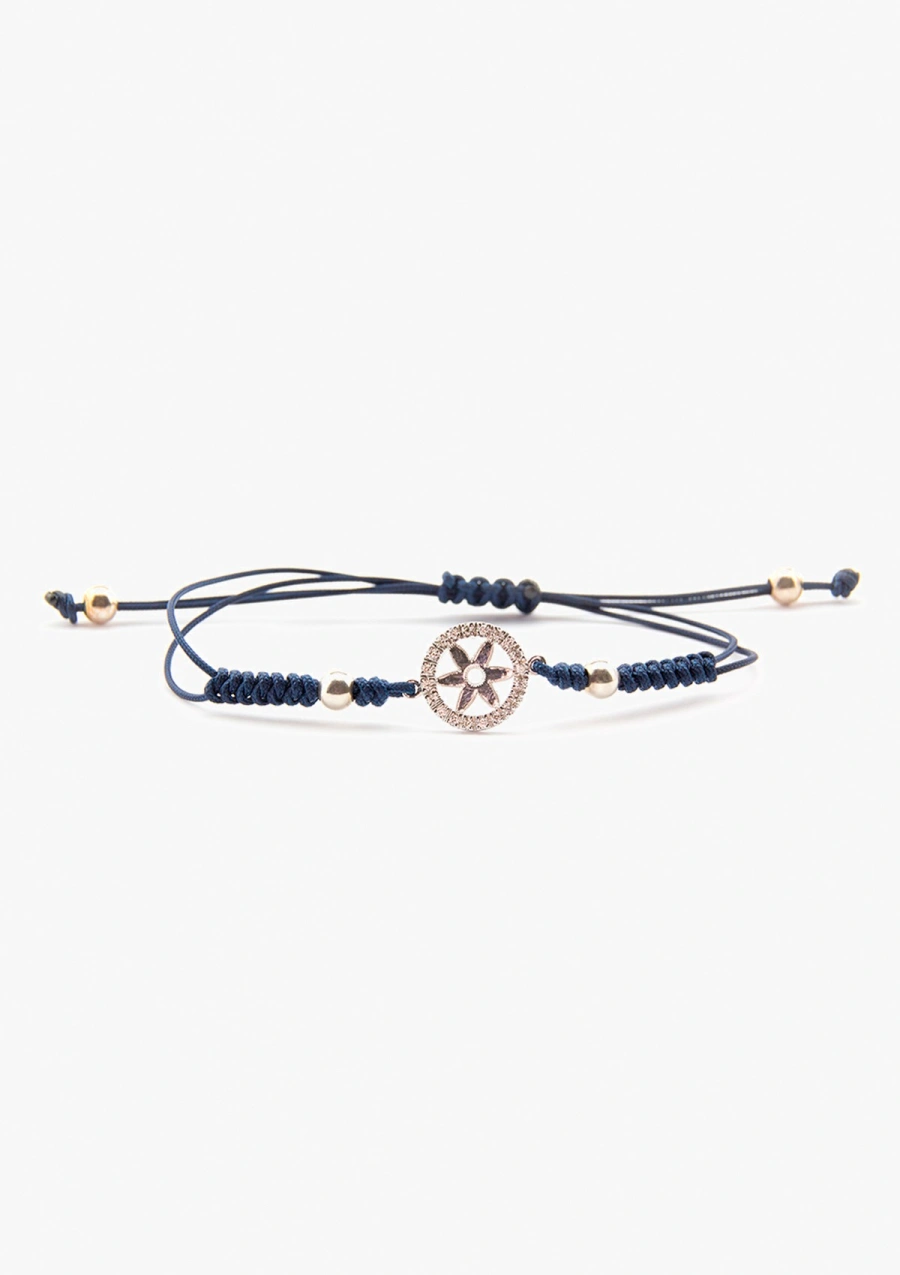 - 4 contas de prata de lei (925) e cordão de macramé azul-marinho.